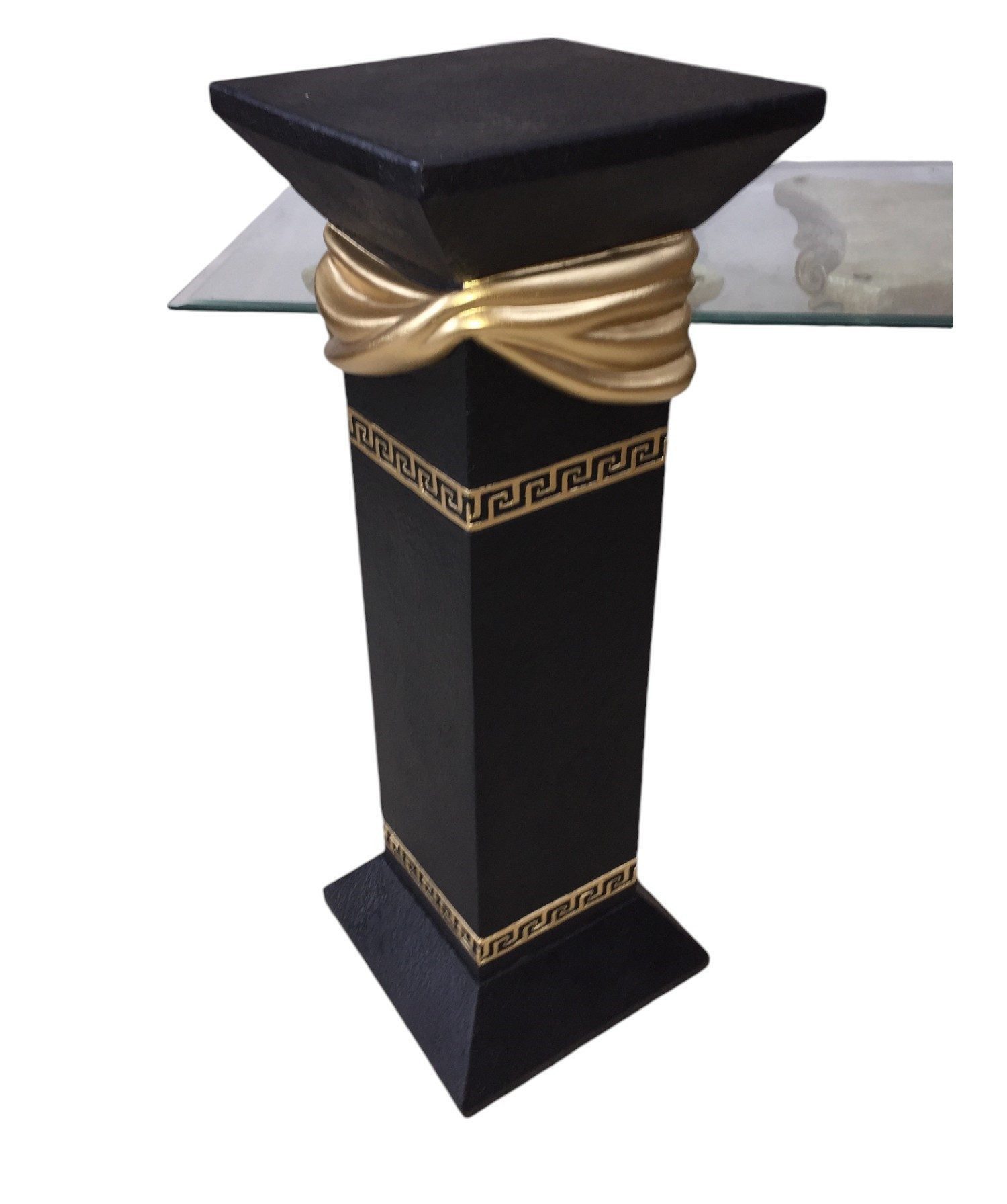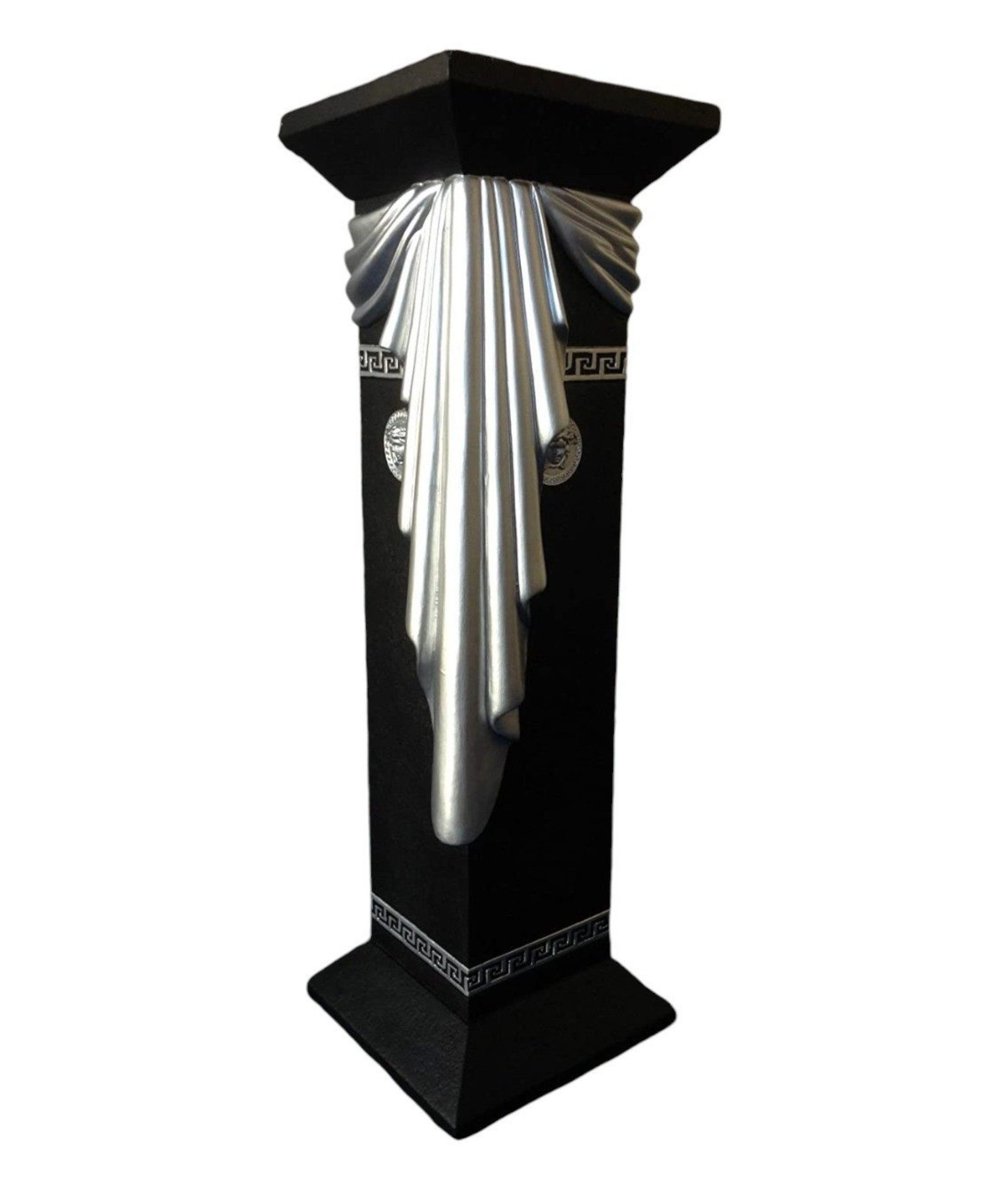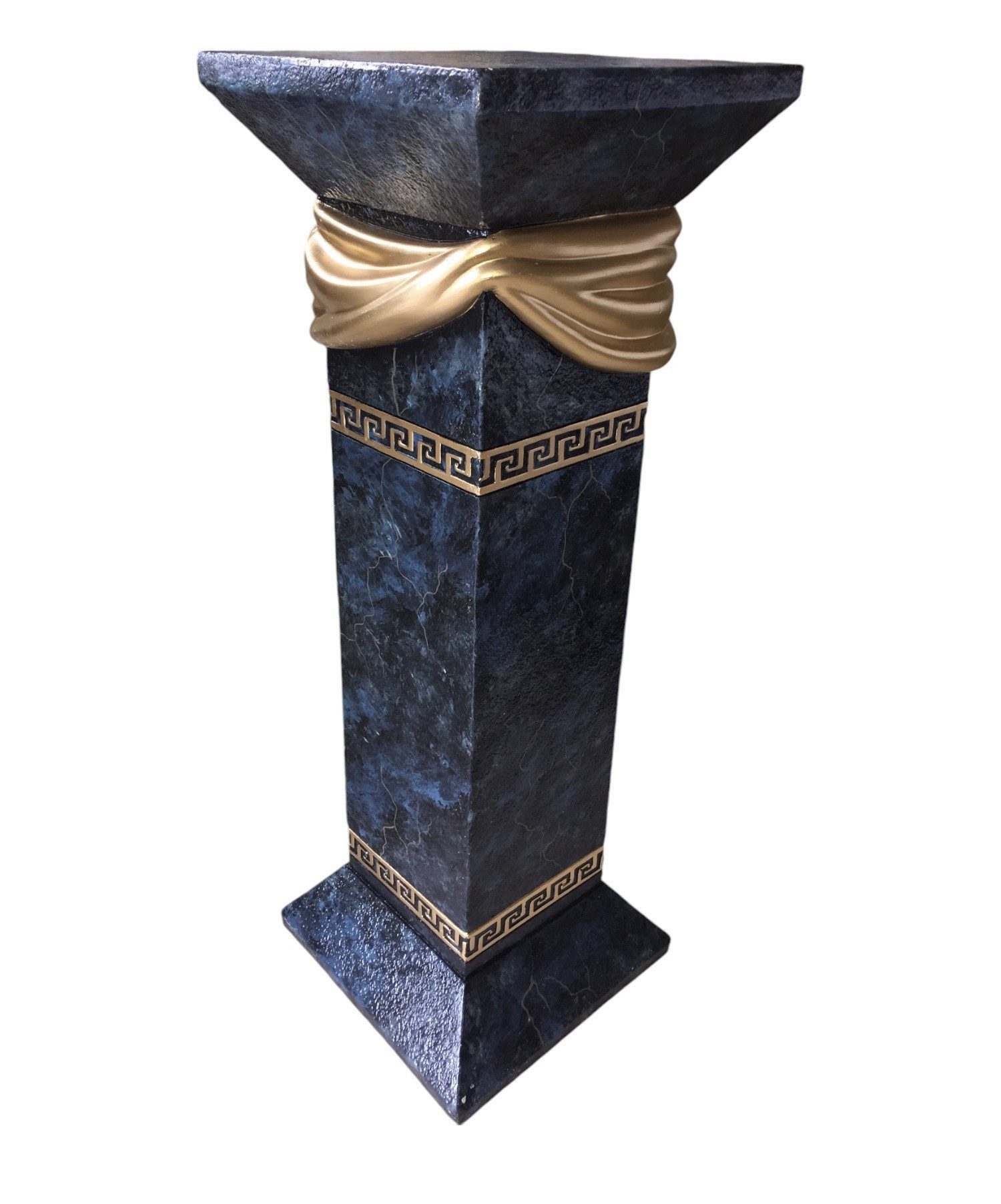 Diese elegante Dekosäule im klassisch griechischen Stil verleiht Ihrem Raum eine majestätische Note. Mit einer beeindruckenden Höhe von 80 cm und einer quadratischen Grundfläche von 30 x 30 cm bietet sie eine perfekte Plattform für Ihre dekorativen Elemente. Die handbemalte Säule in strahlendem Weiß wird durch goldene Akzente veredelt - besonders auffällig ist die kunstvoll drapierte goldene Stoffbahn, die sich elegant um den oberen Teil der Säule schmiegt. Der klassische Mäander-Fries, ein typisches Element griechischer Architektur, ziert den Sockel und den oberen Rand. Diese vielseitige Säule kann sowohl als Beistelltisch als auch als Podest für Vasen, Skulpturen oder andere Dekorationsobjekte verwendet werden. Die Kombination aus zeitloser Form und edlen Details macht dieses Möbelstück zu einem außergewöhnlichen Blickfang in jedem Wohnambiente.