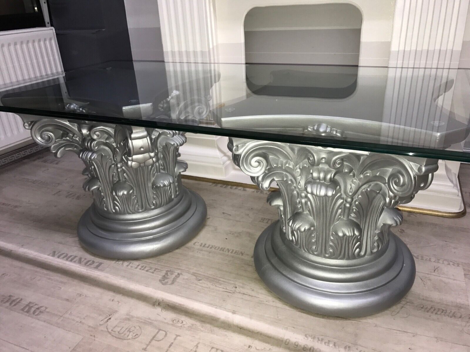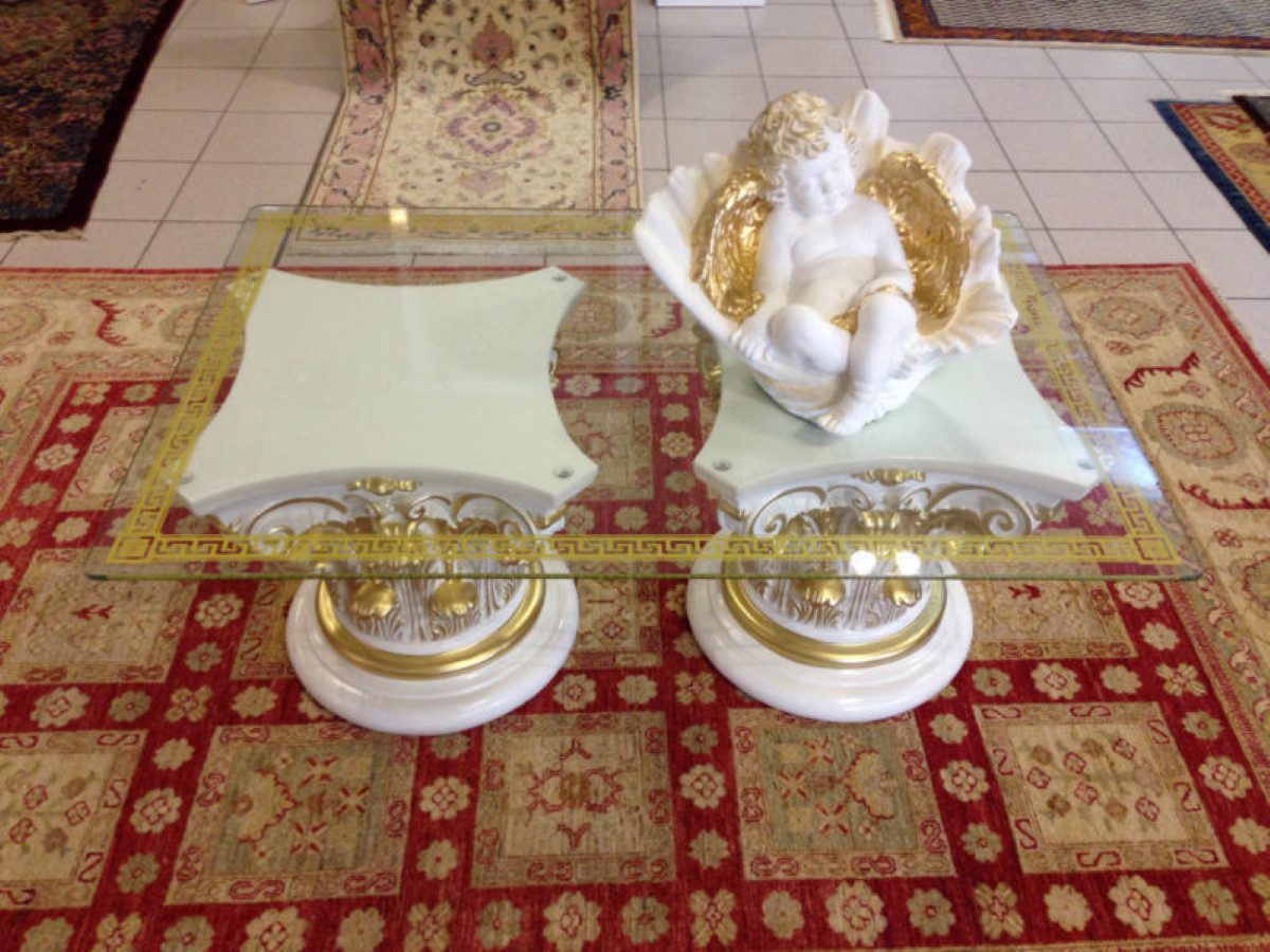 Esstisch »Designertisch, Mäander« Elegante und Stilvolle Ausführung Stilvoll Robust Zeitloses Design B/H/T: 130cm / 55cm / 90cm Glasdicke: 0,9cm Farbe: Creme-Gold Material-Untergestell: Stuckgips- Hochwertige Ausführung! Der Couchtisch verbreitet in jedem Raum ein helles, freundliches Ambiente. Die hochwertigen Materialien sowie die aufwendige Verarbeitung versprechen Langlebigkeit. Ein weiterer Vorteil ist die unkomplizierte Pflege des Produktes.