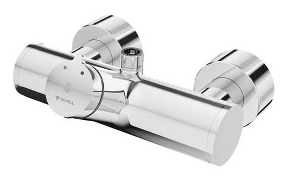 Schell Vitus Aufputz-Duscharmatur Mischwasser Selbstschluss Abgang oben mit Ventil zur thermischen Desinfektion Chrom