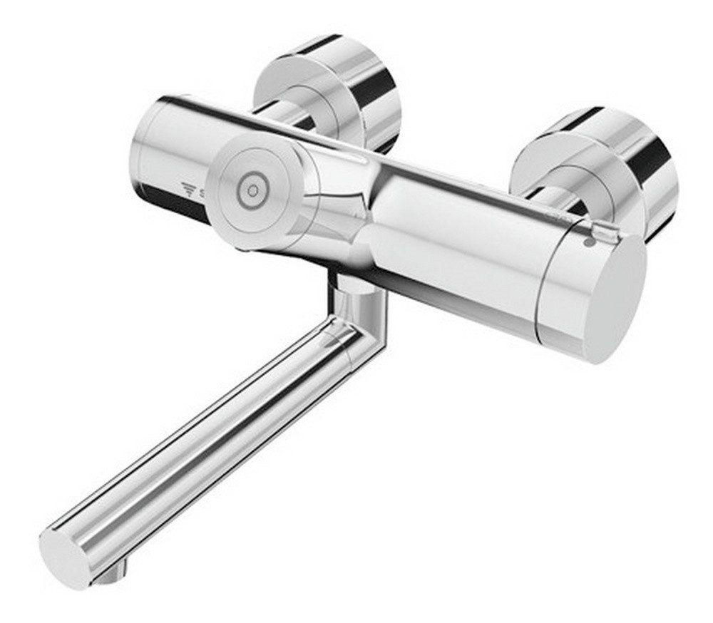 Lieferumfang | CVD-Touch-Elektronik im Armaturendeckel integriert Thermostatkartusche nach EN 1111 mit entriegelbarer/arretierbarer Temperatursperre 38 °C und Sicherheitsverriegelung bei Kaltwasserausfall Arretierscheibe für max. Temperaturbegrenzung (Verbrühungsschutz) 2 Rückflussverhinderer (RV, DIN EN 1717: EB) Batteriefach mit 4 x AA Batterien Wandanschluss mit S-Anschlüssen und Rosette (tiefeneinstellbar) Strahlregler max. 5 l/min druckunabhängig |