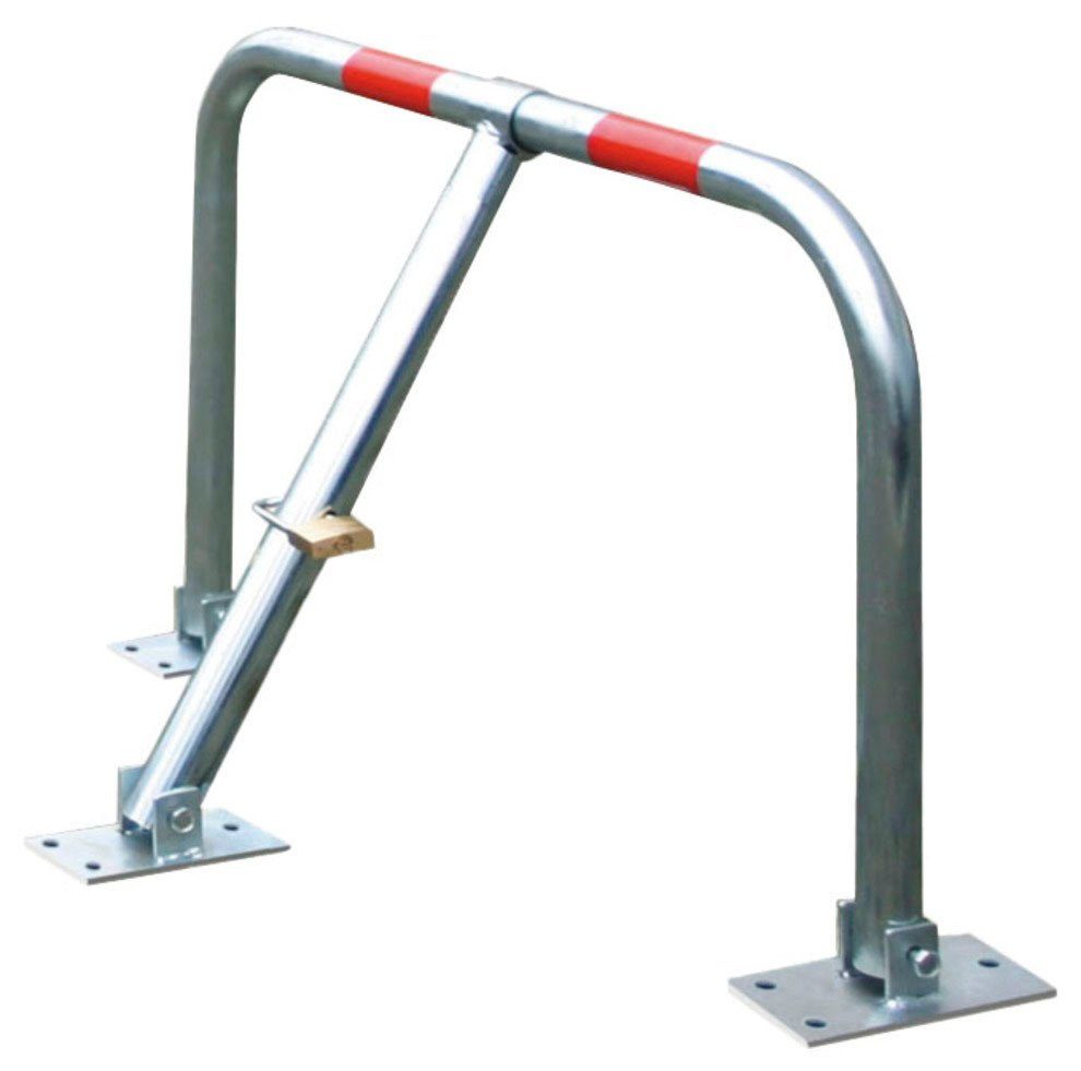 Der Parkbügel mit Schloss versperrt Privatparkplätze, Einfahrten oder Durchfahrten für Unbefugte. Dafür wird der Parkbügel bei Bedarf aufgestellt und mit einem Vorhängeschloss gesichert. Ein Vorhängeschloss mit zwei Schlüsseln liegt dem Lieferumfang bei. Die verzinkte Metallkonstruktion mit drei Standbeinen wird mit insgesamt 9 Schrauben auf dem Untergrund verankert. Diese Drei-Punkt-Befestigung sorgt für eine hohe Standfestigkeit und Stabilität. Für mehr Sicherheit bei schlechten Sichtverhältnissen oder Dunkelheit sorgen die reflektierenden Leuchtmarkierungen an der Oberseite des Parkbügels.