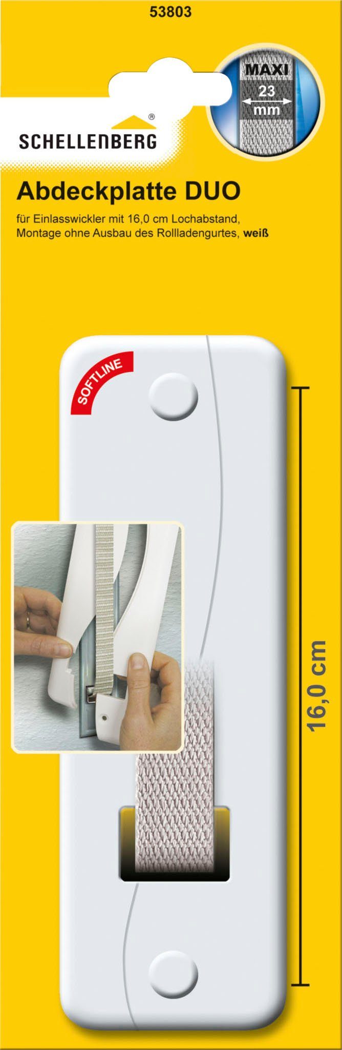 Mit der stabilen Gurtwickler-Abdeckplatte Duo wird ein Unterputz-Gurtwickler schnell und sauber verdeckt, ohne ihn ausbauen zu müssen. Aufgrund des neutralen und zeitlosen Designs in Weiß fügt sich die Abdeckplatte Duo in nahezu jede Wohnumgebung unauffällig ein. Sie ist passend für Rollladengurte mit einer Breite von 23 mm, entsprechend dem Rollladensystem Maxi.
