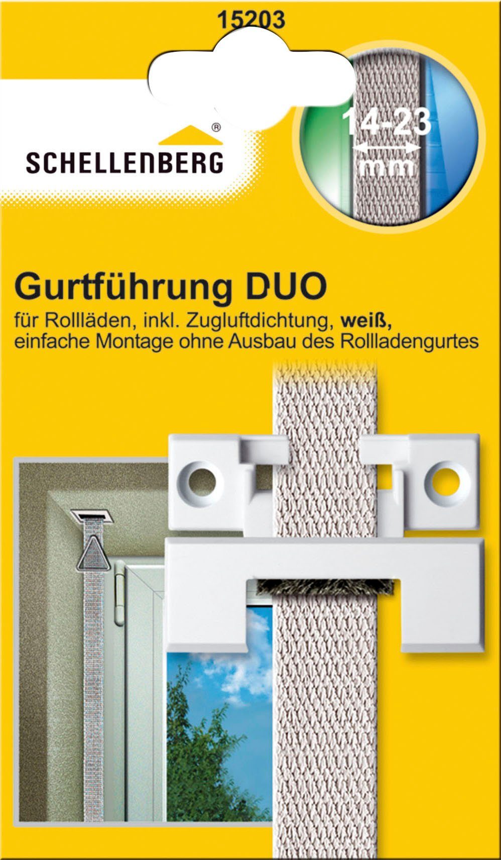 Die Gurtführung Duo führt den Rollladengurt aus dem Rollladenkasten und reduziert den Verschleiß des Gurtbandes. Die integrierte Bürstendichtung verhindert zusätzlich kalte Zugluft und sorgt so für mehr Komfort im Wohnraum. Die Gurtführung Duo hat die Maße 60 x 23 x 8 mm und einen Lochabstand von 45 mm. Sie ist sowohl mit dem Rollladensystem Mini, mit einer Gurtbreite von 14 mm, als auch mit dem Rollladensystem Maxi, mit einer Gurtbreite von 18-23 mm kompatibel.