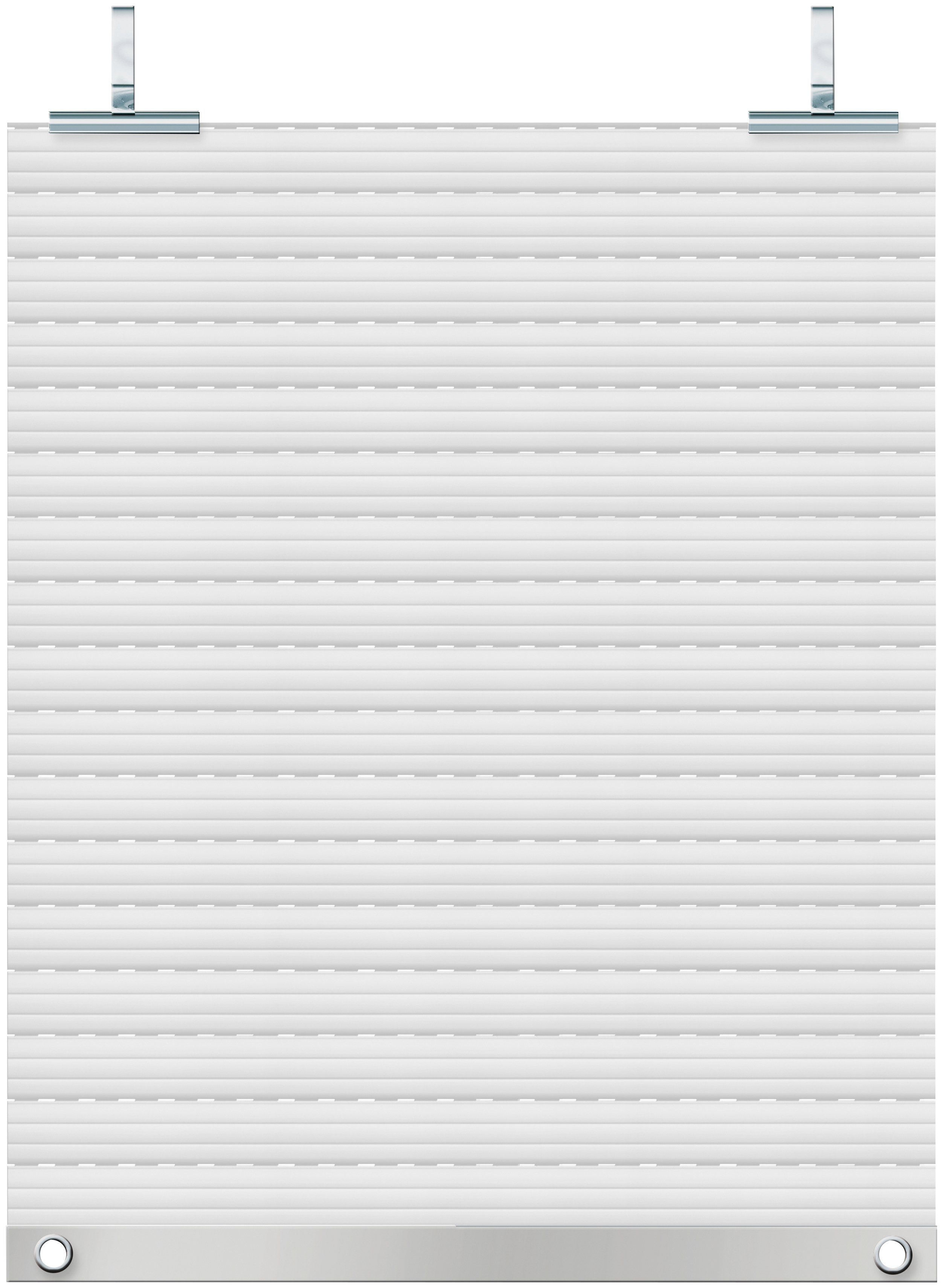 Das einbaufertige Set besteht aus einem PVC-Rollladenpanzer in Weiß, zwei oder drei Rollladenaufhängungen, einer Endleiste aus Aluminium sowie passenden Anschlagsstopfen. Die Breite lässt sich bei Bedarf mit einer Säge kürzen und die Höhe durch das Entnehmen oder Hinzufügen von separat erhältlichen Einzelprofilen anpassen.