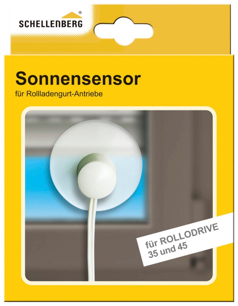 Der Sonnensensor für RolloDrive 35 und 45 misst den Lichtwert an der Fensterscheibe und veranlasst den elektrischen Gurtwickler, den Rollladen automatisch zu öffnen oder zu schließen. Der Sensor wird einfach auf die Innenseite der Fensterscheibe mit einem Saugnapf befestigt und mit einem 1,5 m langen Steckerkabel mit dem RolloDrive verbunden.