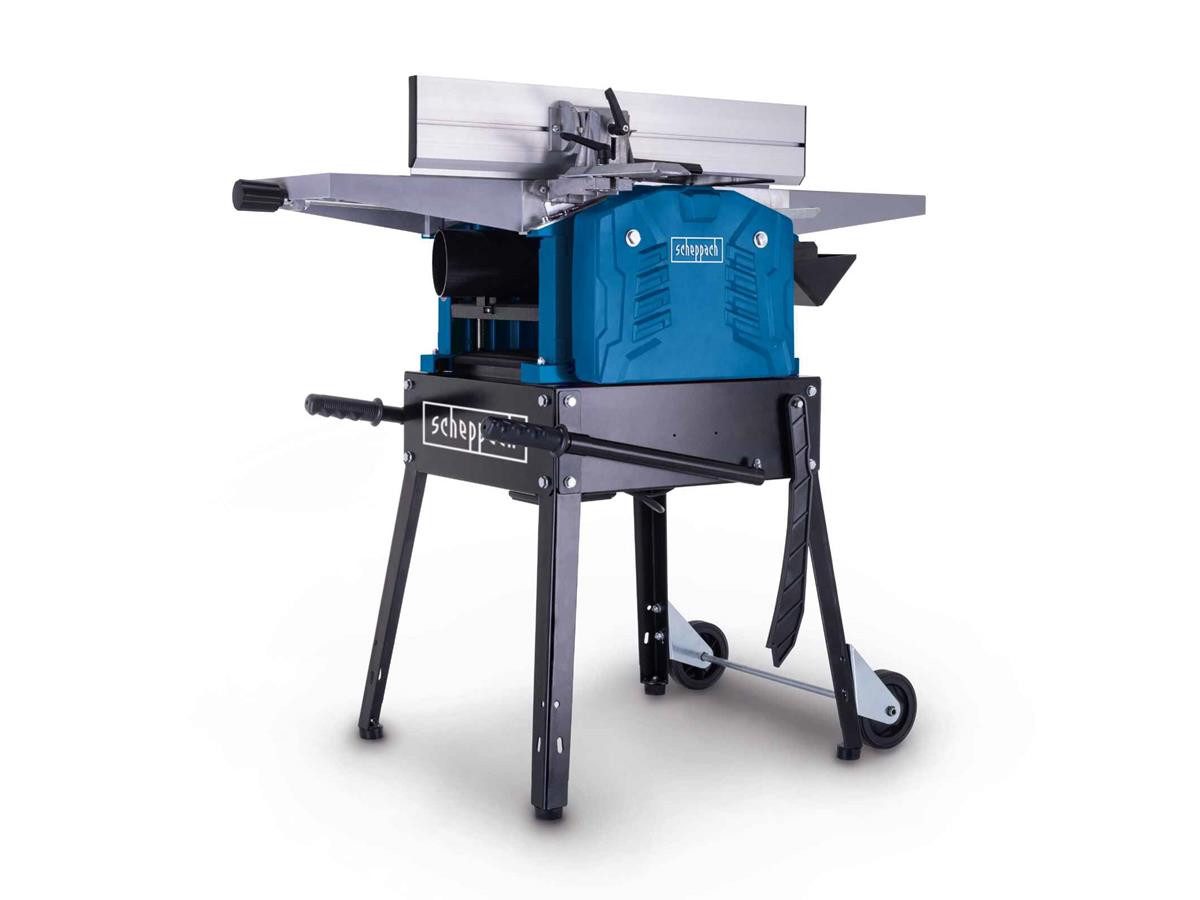 Die kombinierte Abricht- / Dickenhobelmaschine HMS1500 von Scheppach eignet sich zum Bearbeiten von Bohlen, Balken oder Brettern. Mit einer Hobelbreite von 260 mm und einer Hobeldurchlasshöhe von 160 mm können auch größere Werkstücke problemlos bearbeitet werden. Zwei langlebige HS-Hobelmesser mit 6500 min-1 sorgen für präzise Ergebnisse. Der Umbau von Abricht- zu Dickenhobel erfolgt einfach und werkzeuglos. Ein Untergestell mit Transporthebel und Rädern ermöglicht einen stabilen und sicheren Stand sowie einen einfachen Transport.