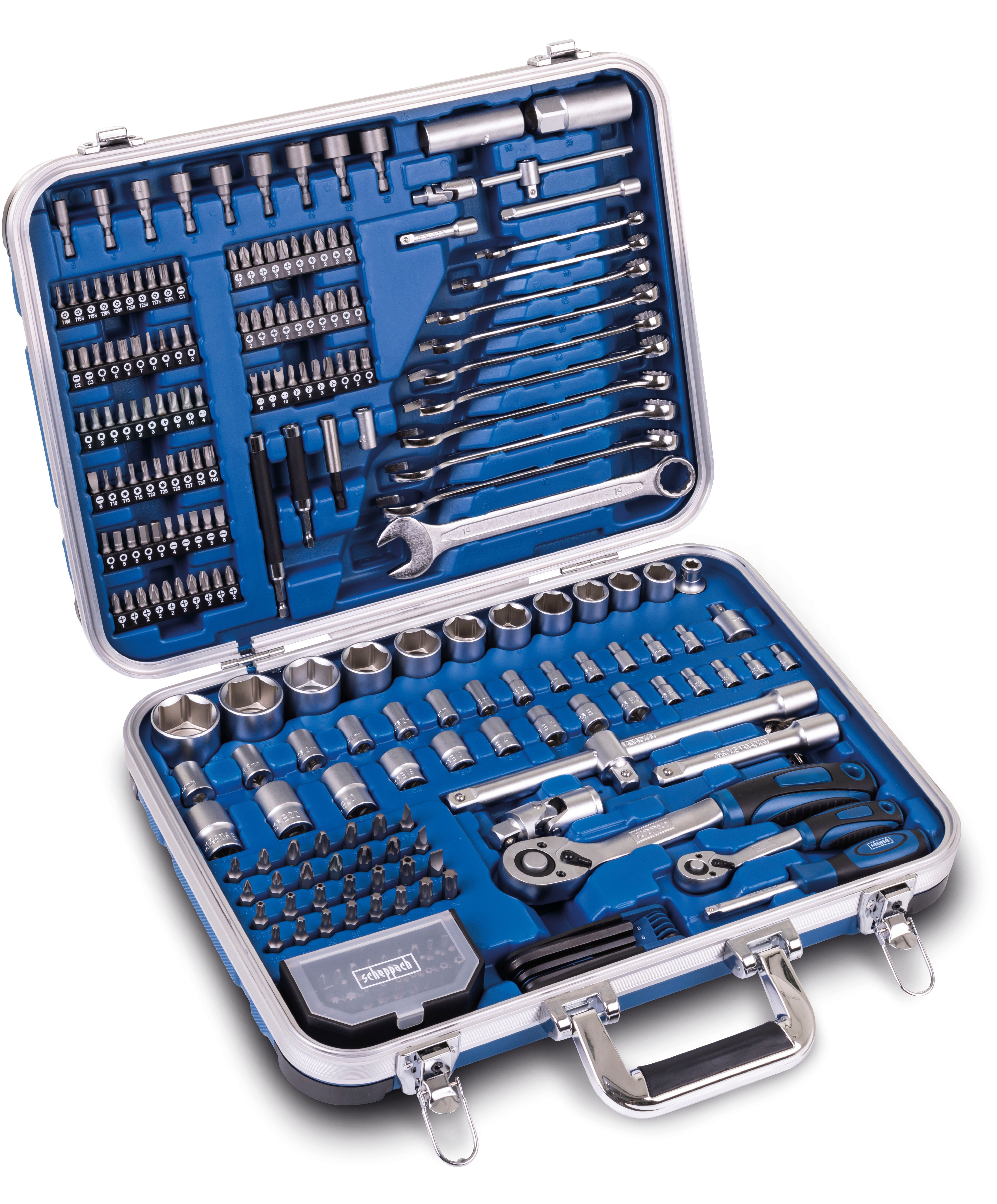 Lieferumfang | 2x 3/8" Zündkerzeneinsatz 16 & 21 mm1x 1/4" Kardangelenk1x 1/4" Verlängerung 2“1x 1/4" Verlängerung 4“1x 1/4" Schiebeadapter1x 1/4" Bithalter9x 1/4" Stecknussadapter3x magnetischer Bitaufnahme 60 mm, 80 mm, 120 mm90x Biteinsätze 25 mm9x Gabel-Ringschlüssel 8 mm - 19 mm1x Transportkoffer11x 1/2" Sechskant Steckschlüsseleinsätze 15 mm - 32 mm1x 1/2" Kardangelenk1x 1/2" Umschaltknarre1x 1/2" Verlängerung 5“1x 1/2" Verlängerung 10“1x 1/2" Schiebeadapter1x 1/2" auf 1/4" Stecknussadapter3x 1/2" E-Profil Steckschlüsseleinsätze E20, E22, E241x 1/2" Stecknussadapter6x 3/8" E-Profil Steckschlüsseleinsätze E10 - E1813x 1/4" Sechskant Steckschlüsseleinsätze 4 mm - 14 mm1x 1/4" Umschaltknarre1x 1/4" Schraubendreher5x 1/4" E-Profil Steckschlüsseleinsätze E4 - E829x Biteinsätze 30 mm30x Bitbox 25 mm8x Innensechskantschlüssel (1,5, 2, 2,5, 3, 4, 5, 6, 8 mm) |