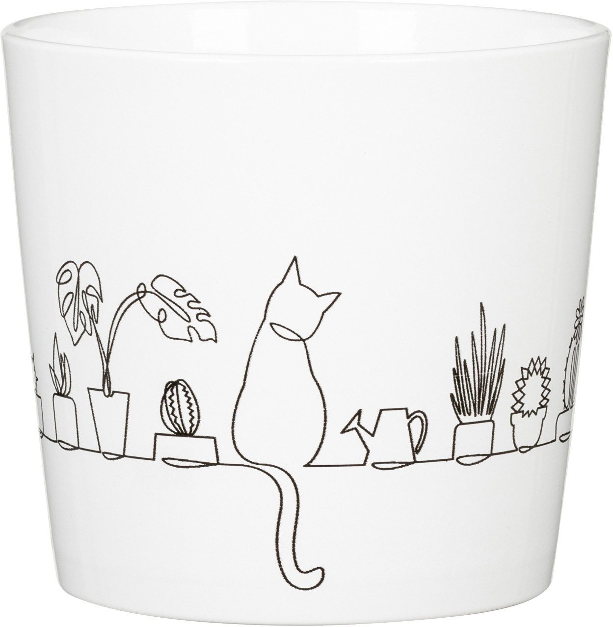 Der Blumentopf 870 Ø 12,8 cm x 11,8 cm Catview von Scheurich lässt die Herzen der Katzenliebhabern höher schlagen: Die fein gezeichnete Illustration greift eine typische Szene aus dem Leben der Haustiger auf. Zusammen mit frischem Katzengras das perfekte Geschenk - für sich selbst und andere Fellfreundinnen und -freunde.