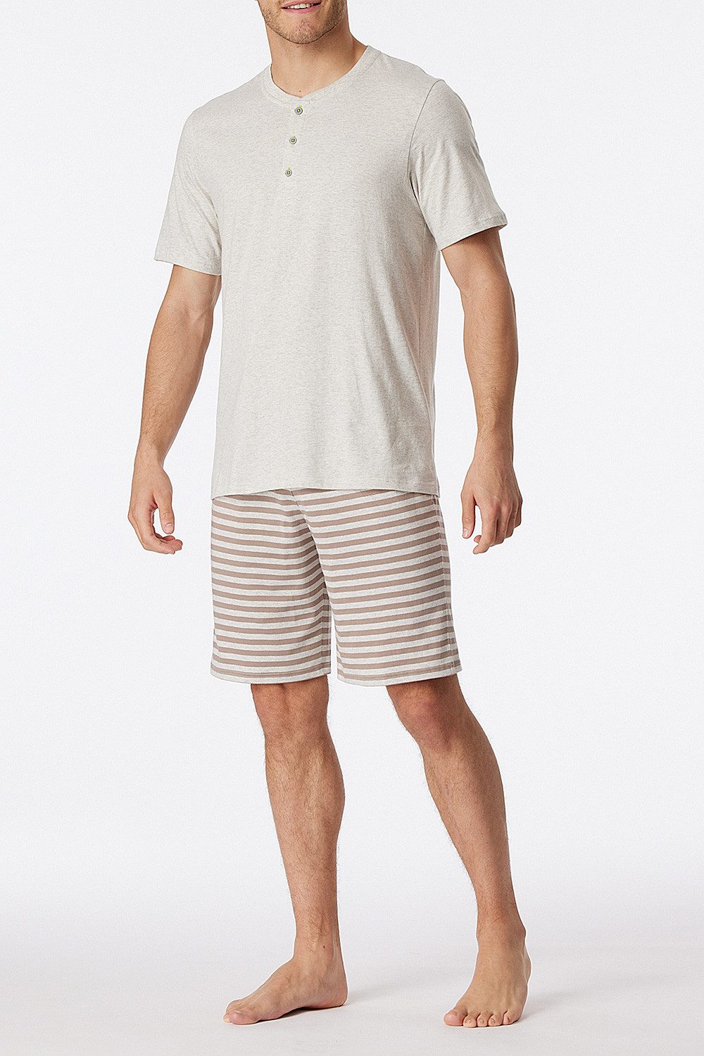 Herren Pyjama Set, kurzer Schlafanzug aus der Serie Casual Nightwear von Schiesser // Artikeldetails: - Herren Pyjama (Zweiteiler, Shorty) von Schiesser / - unifarbenes Oberteil mit Rundhals-Ausschnitt und kurzer Knopfleiste / - SCHIESSER Logo als Nackenprint innen / - gestreifte Shorts, mit Bindeband , Длина ca. 50 cm mit Bund / Farbvarianten: -braungrau (303): Oberteil grau-meliert, Shorts braun-grau gestreift // -grapefruit (526): Oberteil orangefarben, Shorts in Grau-Melange mit nachtblauen Streifen // -jeansblau (816): Oberteil petrolfarben, Shorts in Grau-Melange mit petrolfarbenen Streifen // - Material: 100% Organic Cotton (Single-Jersey-Qualität), schnelltrocknend / - atmungsaktives, hautfreundliches Material für höchsten Tragekomfort / - Pflegehinweis: Maschinenwäsche bis 60° empfohlen, trocknergeeignet bei Stufe 1 / Schiesser - legendäre Qualität !