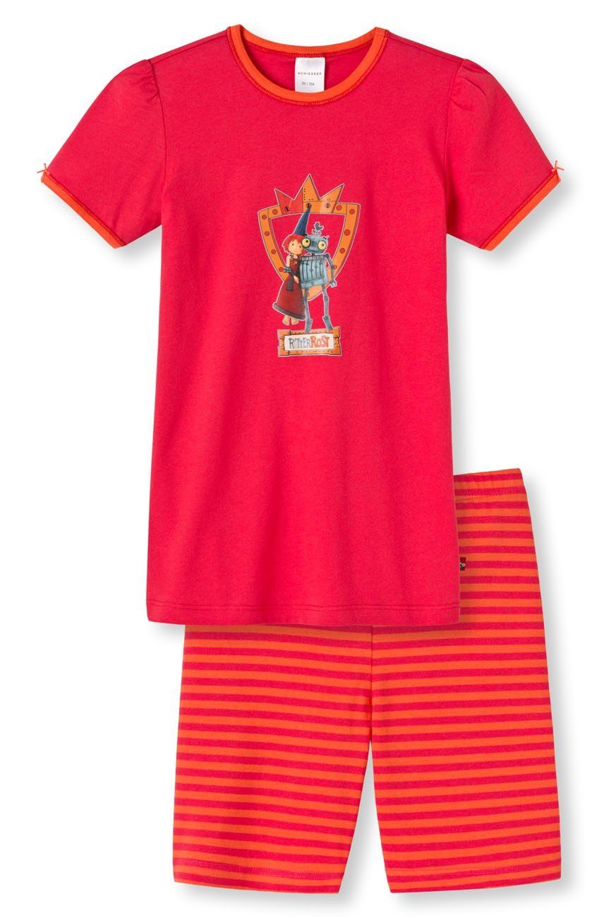 Ein Pyjama bestehend aus einem Mädchen Schlafshirt und einer kurzen Schlafanzughose mit niedlichem Muster.