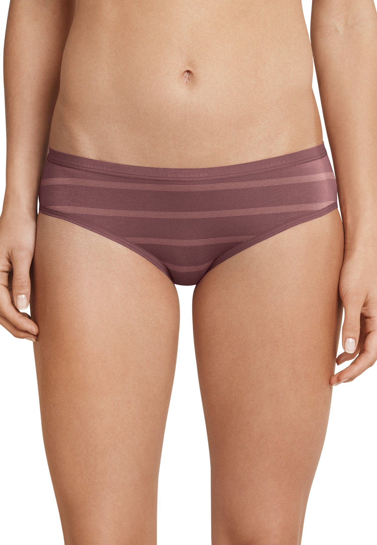 Ein Slip in Uni-Nougatbraun, der andere Tai in Nougat mit gestrickten Ringeln mit schönem Glanzeffekt, beide Slips mit extra schmalen Beinabschlüssen für hohen Tragekomfort, mit geprägtem, rundumlaufendem SCHIESSER-Schriftzug am schmalen Webgummibund, in perfekt sitzender, elastischer Single-Jersey-Qualität.
