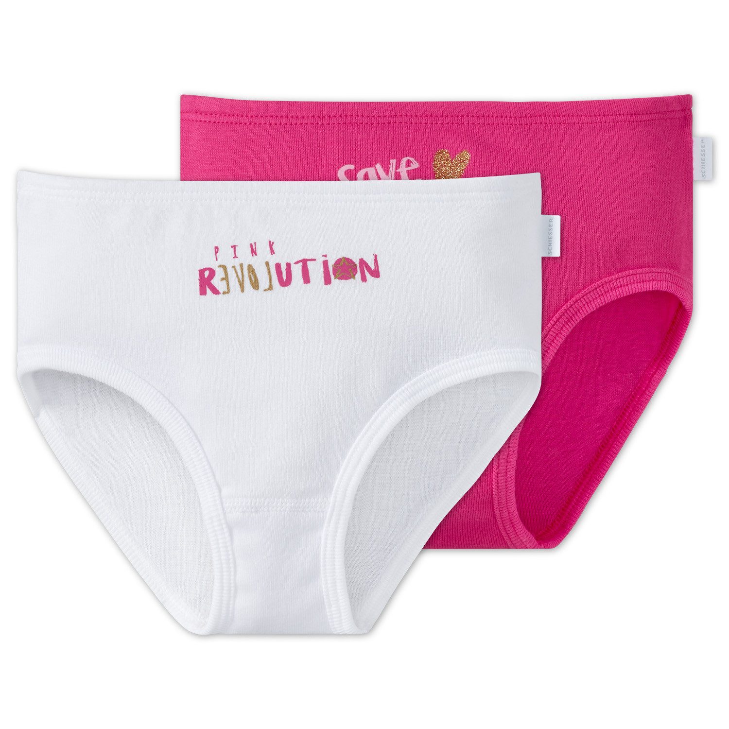 Diese beiden Hüftslips erobern im Sturm alle Mädchenherzen! Dafür sorgt jede Menge Pink, freche Sprüche und tolle Glitzereffekte, die sich einmal auf Pink mit Schriftzug "save the planet (I'ts the only one with chocolates!)" und im weiße Modell mit dem Spruch "PINK REVOLUTION" wiederfinden. Hochwertiger Feinripp aus 100% Baumwolle macht die Unterhosen wunderbar weich und bequem. Ein unschlagbarer Wäsche-Doppelpack für kleine Girlies - natürlich in bester SCHIESSER-Qualität.