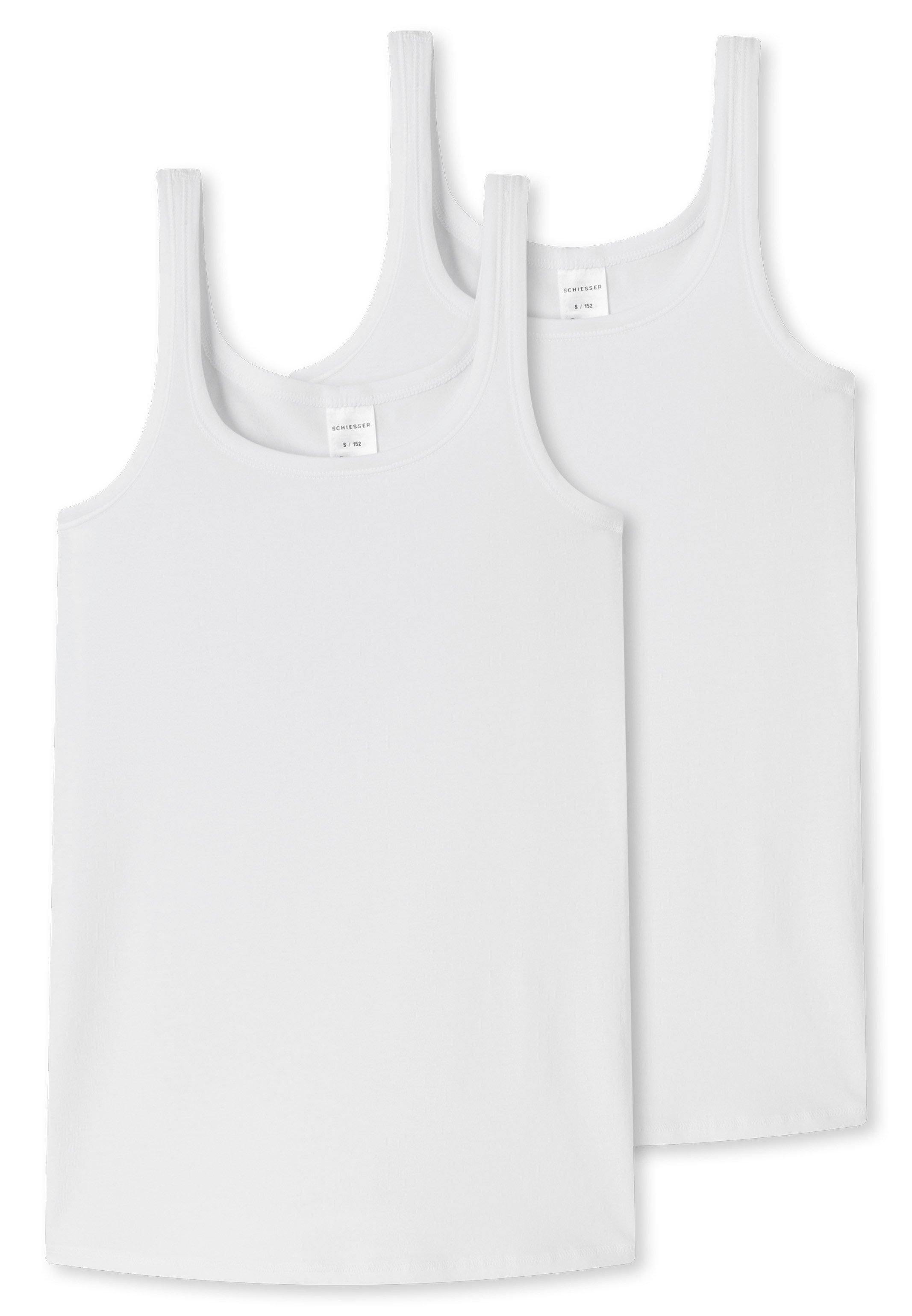 Superbequeme Tops im schlichten Look für coole Girls aus der Serie 95/5. Natürlich stimmt auch das Feeling, denn die beiden Unterhemden fühlen sich dank elastischem Single Jersey aus natürlicher Baumwolle wunderbar weich an und machen jede Bewegung garantiert bequem mit! Trendy Wäsche in bester Qualität!