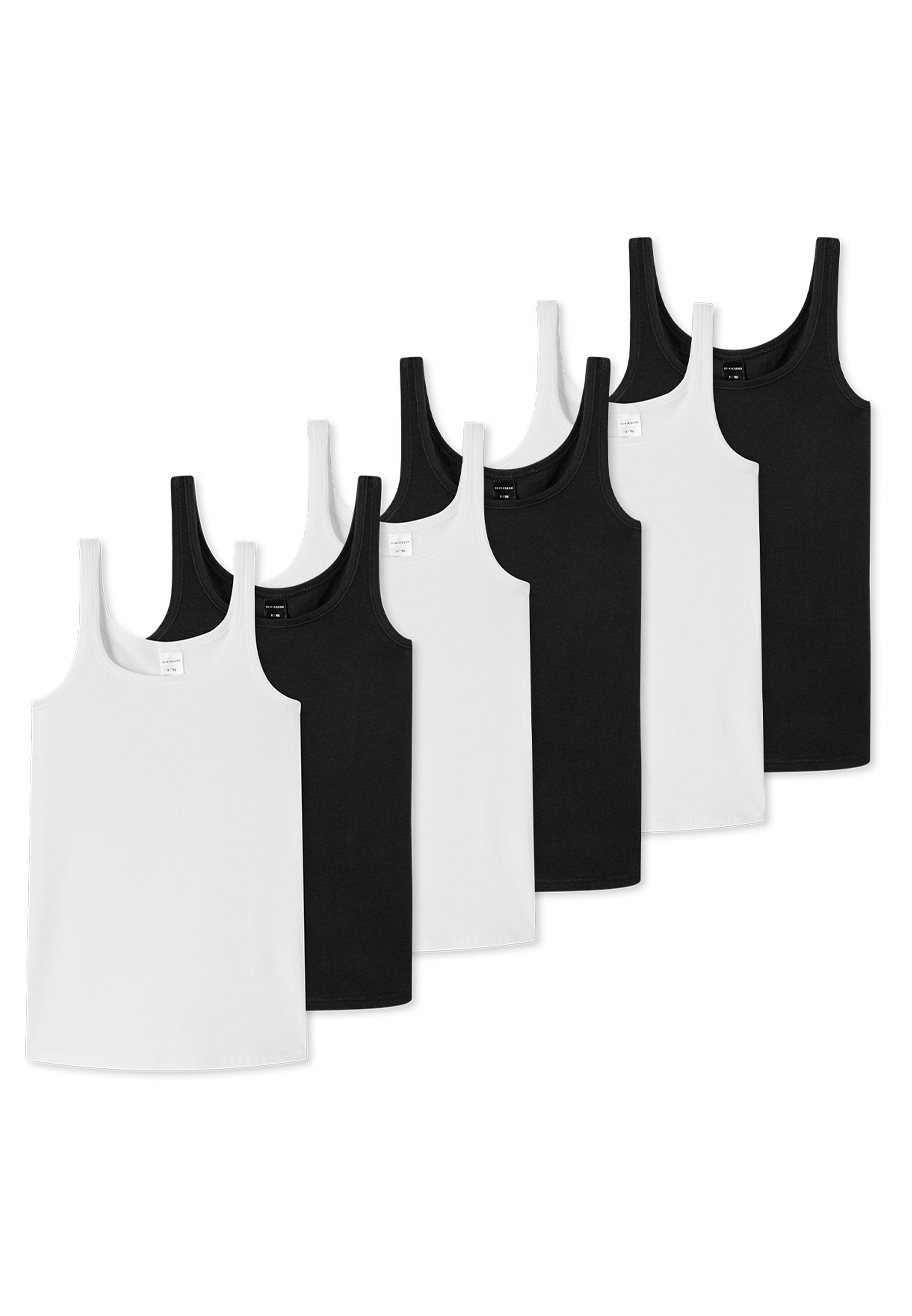Superbequeme Tops im schlichten Look für coole Girls aus der Serie 95/5. Natürlich stimmt auch das Feeling, denn die beiden Unterhemden fühlen sich dank elastischem Single Jersey aus natürlicher Baumwolle wunderbar weich an und machen jede Bewegung garantiert bequem mit! Trendy Wäsche in bester Qualität!