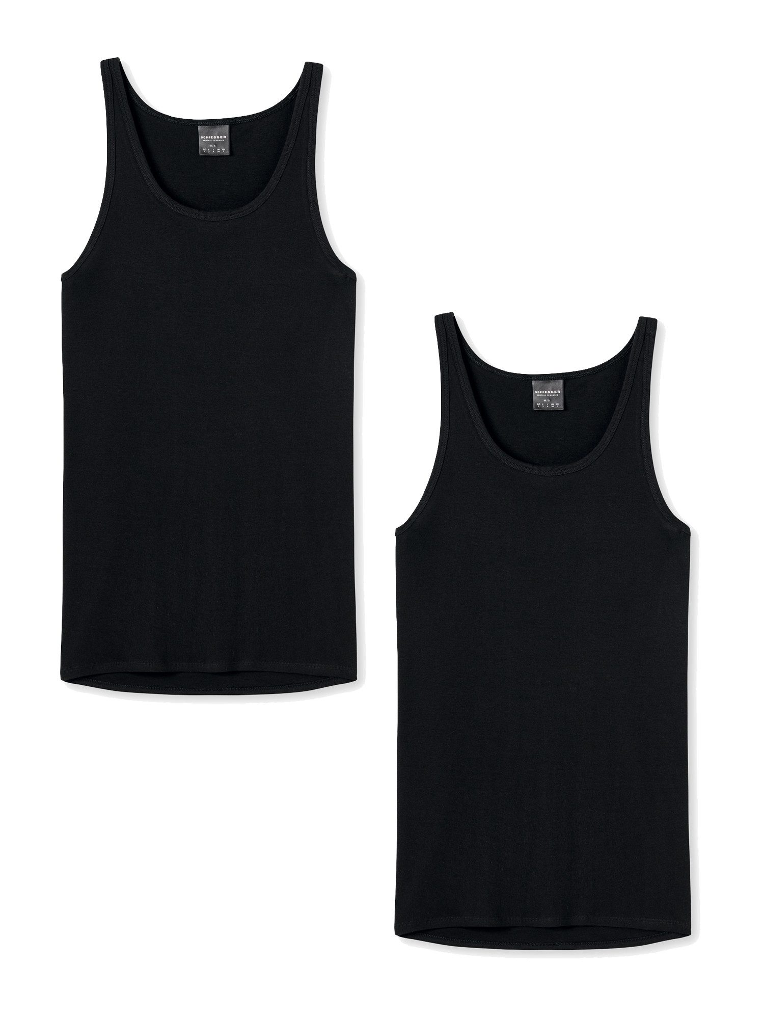 Ein wahres Wäsche-Original: Dieses schwarze Herren-Unterhemd aus der SCHIESSER-Serie 'Classics' kombiniert ein angenehm weiches Material mit bewährt bester Qualität. Hochwertiger Feinripp aus 100% supergekämmter Baumwolle fühlt sich dabei unverkennbar soft an auf der Haut und gewährt ganz ohne störenden Seitennähte sowie mit der etwas längeren Rücken-Partie einen optimalen Tragekomfort. Ideal für Herren, die klassische Tagwäsche in perfekter Passform schätzen!