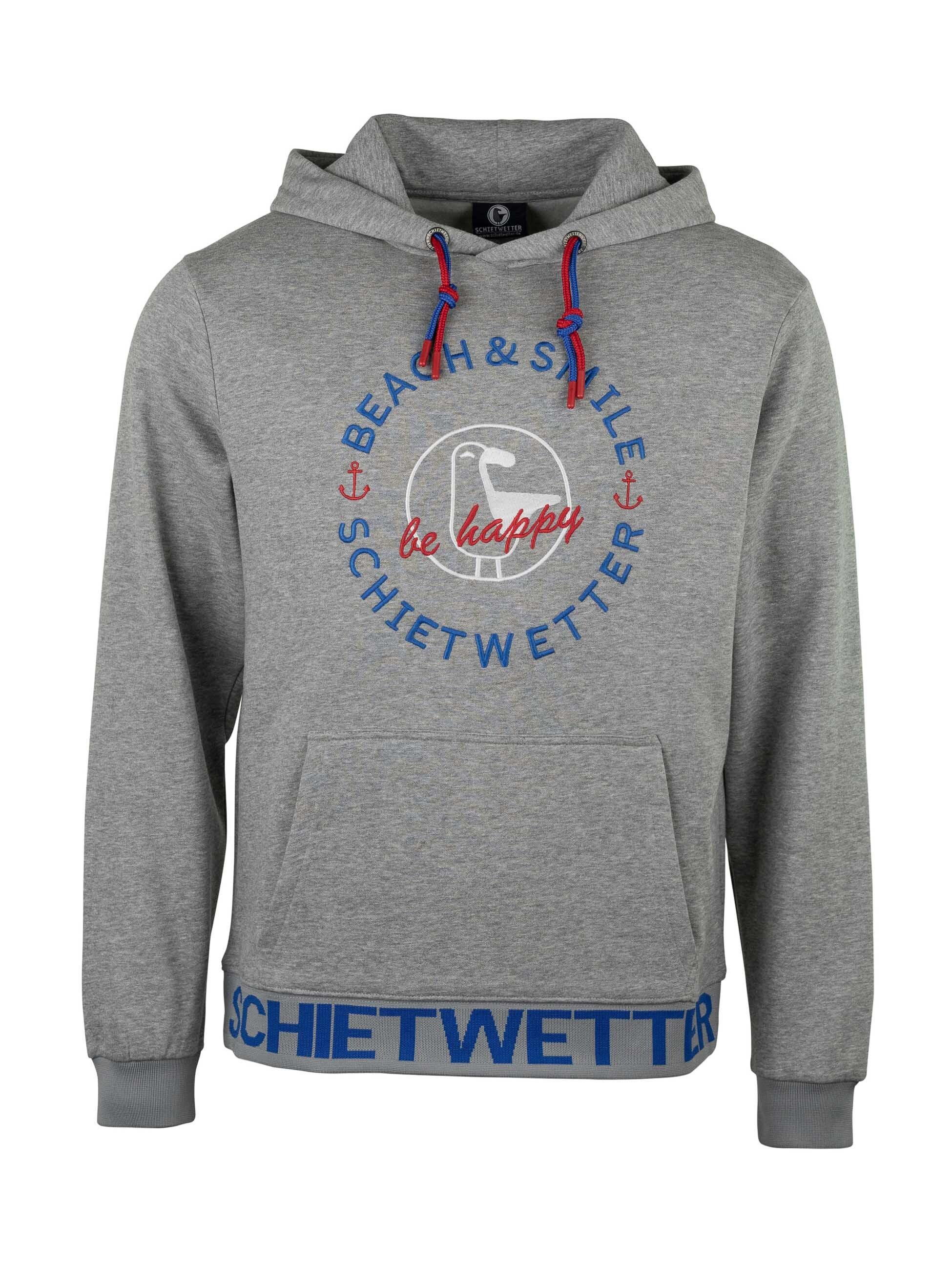 AUFFÄLLIGE STICKEREI: Der Hoodie ist verziert mit modischen Stickerein, unserer Schietwetter-Möwe und coolen Sprüchen.