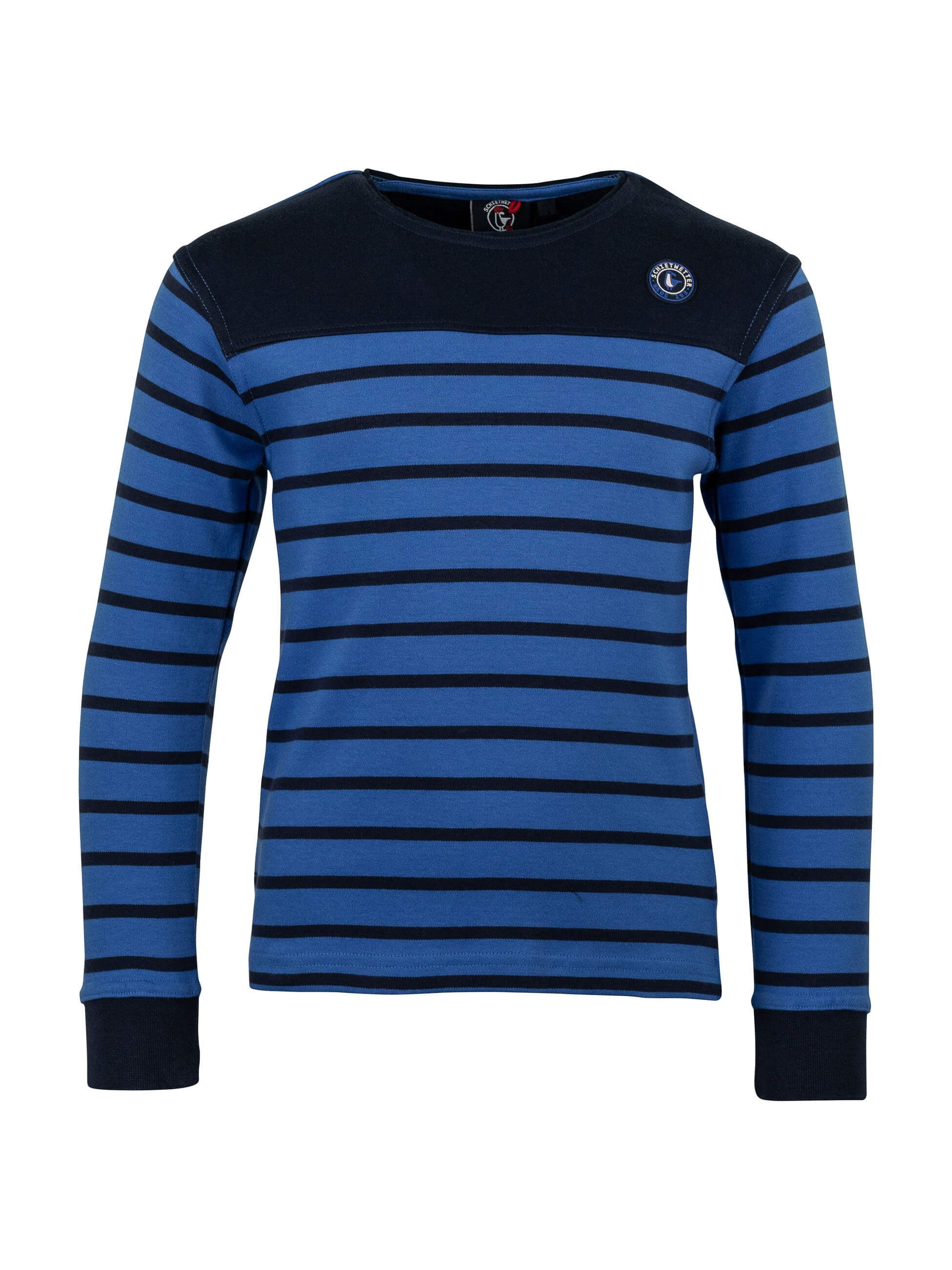 Der Longsleeve Auri ist das ideale Oberteil für alle Kinder, die stilvolle Lässigkeit und maritime Eleganz vereinen möchten. Dieser hochwertige Longsleeve-Pullover überzeugt durch sein einzigartiges Design: Die Vorderseite präsentiert sich in einem modernen Streifenlook, während der Rücken in Unifarben gehalten ist und das exklusive Schietwetter-Logo trägt. Dank des Rundhalsausschnitts und der schmalen Passform sitzt dieses Kinder-Shirt besonders angenehm und bietet optimale Bewegungsfreiheit. Gefertigt aus 100% Baumwolle, bietet der Longsleeve höchsten Tragekomfort und ist zudem atmungsaktiv – perfekt für jeden Tag. Die breiten Ärmelbündchen und der schmale Bauchsaum sorgen für einen sportlich-eleganten Look, während die seitlichen Schlitze dem Pullover eine zusätzliche Raffinesse verleihen. Ob als lässiges Sweatshirt für den Alltag oder als stylisches Oberteil für maritime Abenteuer– der Longsleeve Auri ist ein vielseitiger Begleiter für Mädchen und Jungs.