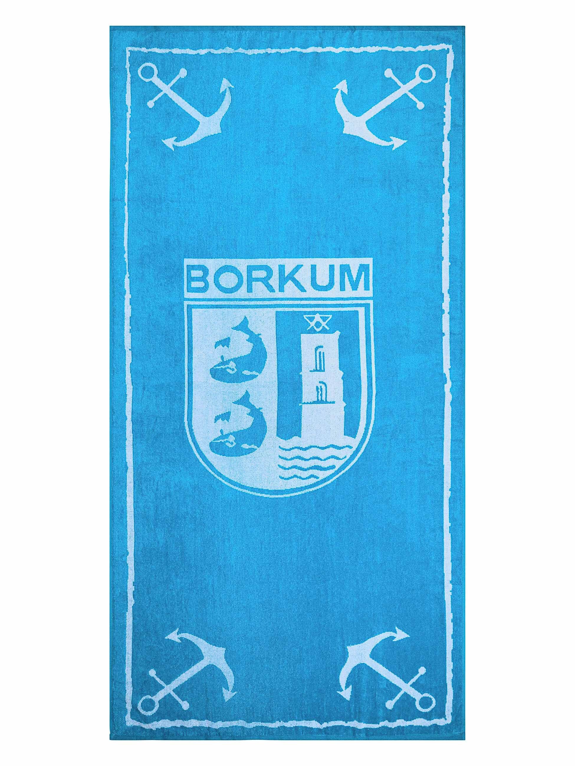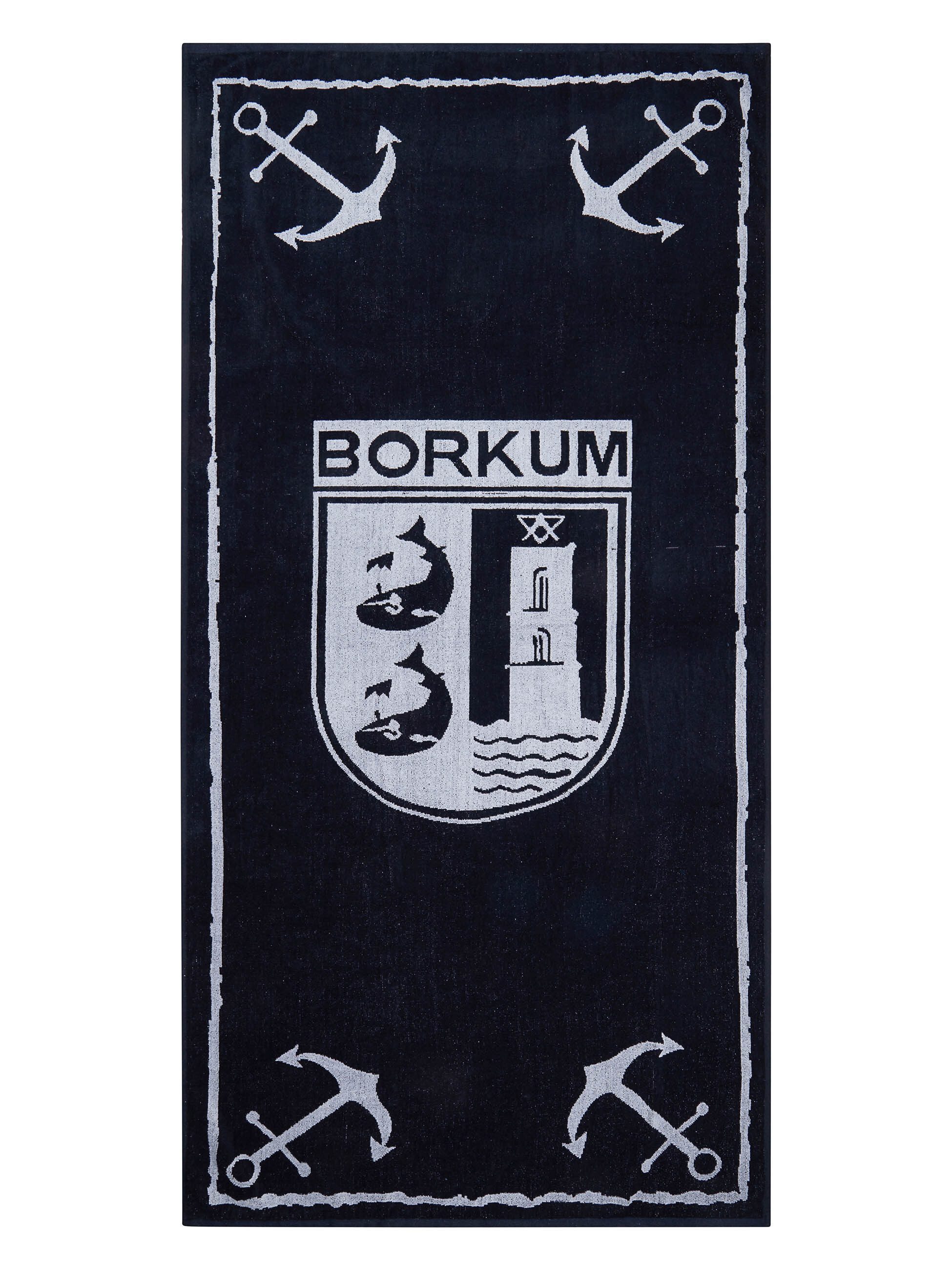 Fühlst du den wunderbar weichen Sand unter den Füßen? Hörst du das Rausche und Brechen der Wellen? Spürst du die feine Brise auf deiner Haut? Ja, das ist Borkum. Und mit diesem Strandhandtuch hast du dieses Strandfeeling nicht nur auf Borkum hast, sondern auch zu Hause im Garten, am Pool oder im Freibad. Das Strandhandtuch „Borkumer Wappen“ zeigt stolz den Schriftzug „Borkum“ und das Borkum Wappen, was deine Borkumliebe widerspiegelt. Mit einer großzügigen Размер von 180cm x 88cm bietet dieses Badehandtuch genug Platz, um sich nach einem erfrischenden Bad im Meer oder im heimischen Pool auszustrecken und zu entspannen. Gefertigt aus 100% hochwertiger Baumwolle, bietet das Frottee eine hervorragende Saugfähigkeit und ein angenehm weiches Gefühl auf der Haut. Dank der schnelltrocknenden Eigenschaften ist dieses Strandtuch perfekt für den täglichen Gebrauch geeignet. Ob am Strand, am Pool oder in der Sauna – das Handtuch ist ein unverzichtbares Accessoire für die ganze Familie. Mit seinem maritimen Design und der hohen Qualität ist es auch ein perfektes Urlaub-Mitbringsel.