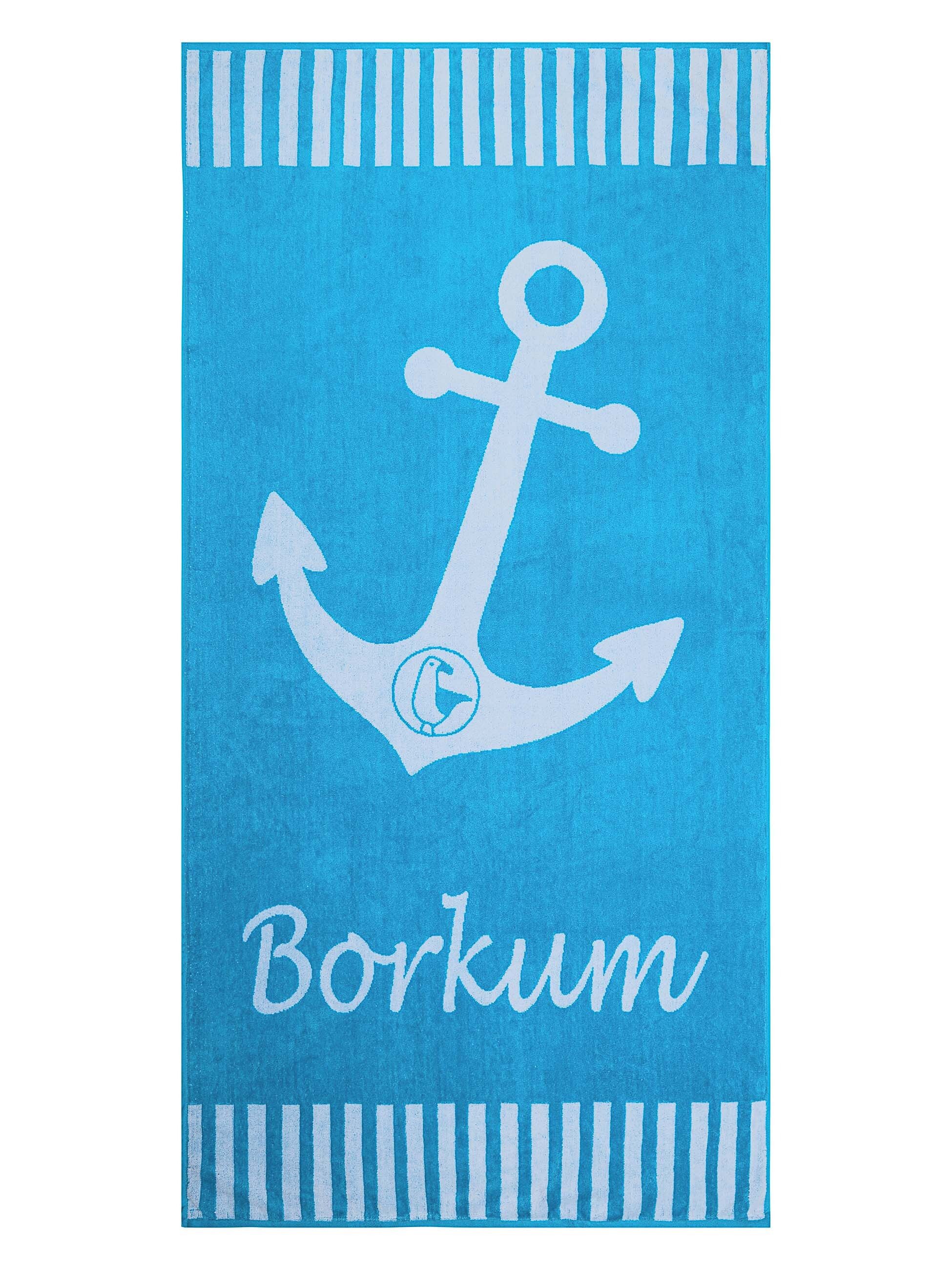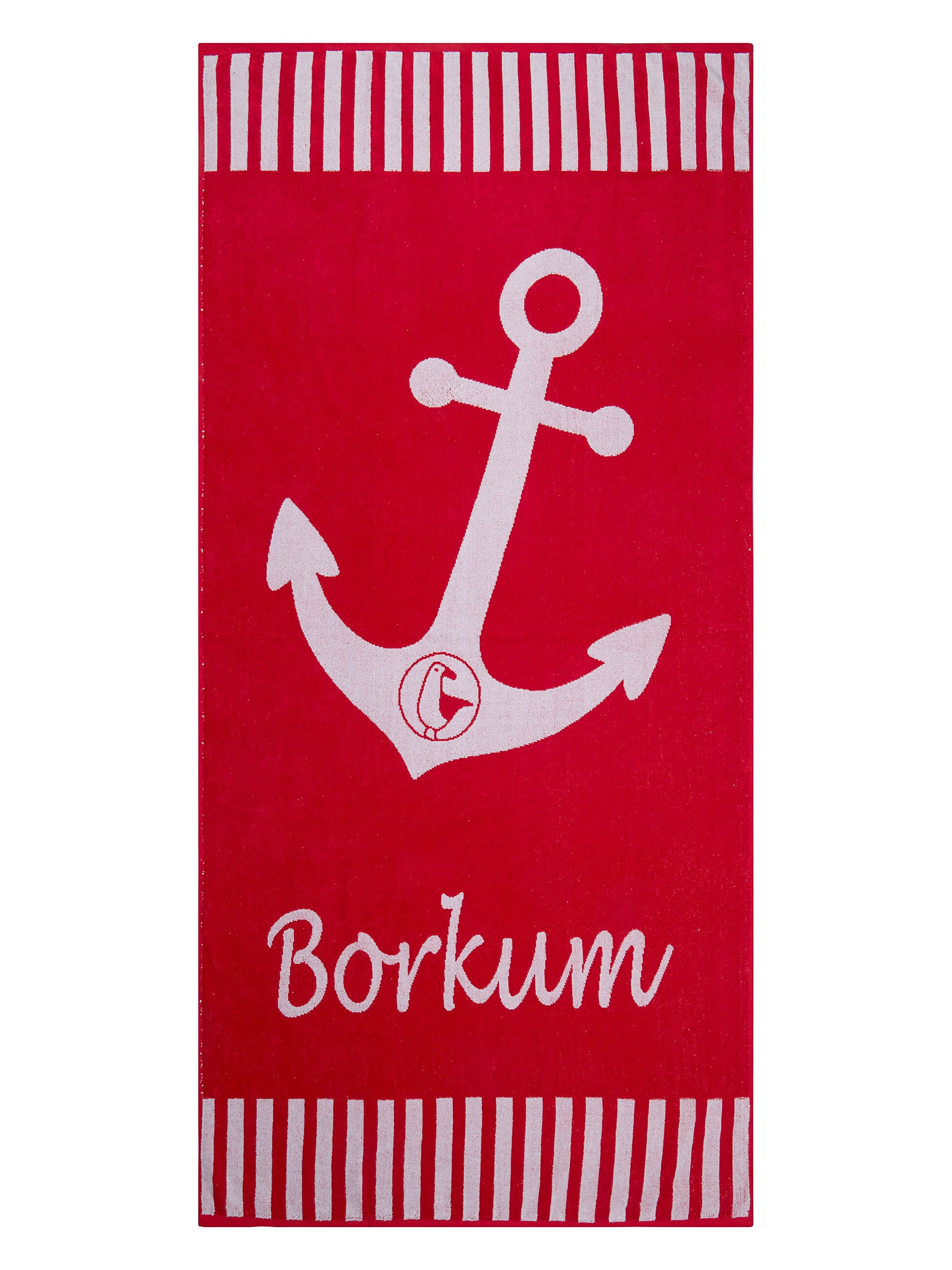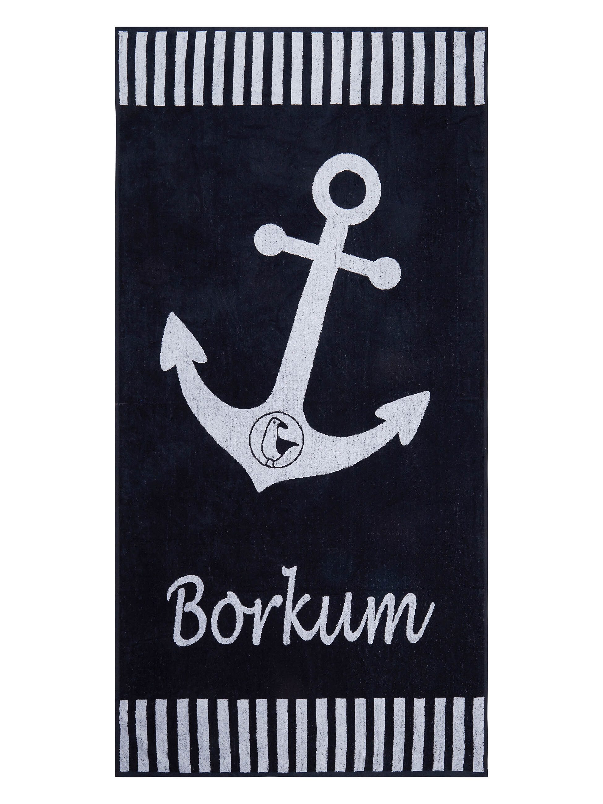 Der weiche Sand auf Borkum ist eines der Markenzeichen der größten Nordseeinsel Deutschlands. Definitiv ein Grund, die Insel zu besuchen und am Strand zu verweilen. Damit du den Strand und das Meer in vollen Zügen genießen kannst, haben wir hier etwas für dich: Das Strandhandtuch „Borkum“. Verziert mit einem großen Anker und unserer Schietwetter-Möwe sowie dem Schriftzug „Borkum“, passt das Handtuch perfekt an den Strand. Aber auch zu Hause am Pool, im Freibad, in der Saune oder nach dem Duschen zeigt sich das Handtuch von seiner besten Seite. Mit einem Baumwollanteil von 80% und einer Размер von 180cm x 88cm bietet das Frottee-Material ideale Voraussetzungen. Dank der schnelltrocknenden Eigenschaften ist dieses Strandtuch ideal für den täglichen Gebrauch. Ob im Urlaub oder in der Heimat – das Strandhandtuch „Borkum“ ist ein unverzichtbares Accessoire für die ganze Familie. Mit seinem maritimen Design und der hohen Qualität ist es auch ein perfektes Geschenk oder Mitbringsel aus dem Urlaub.