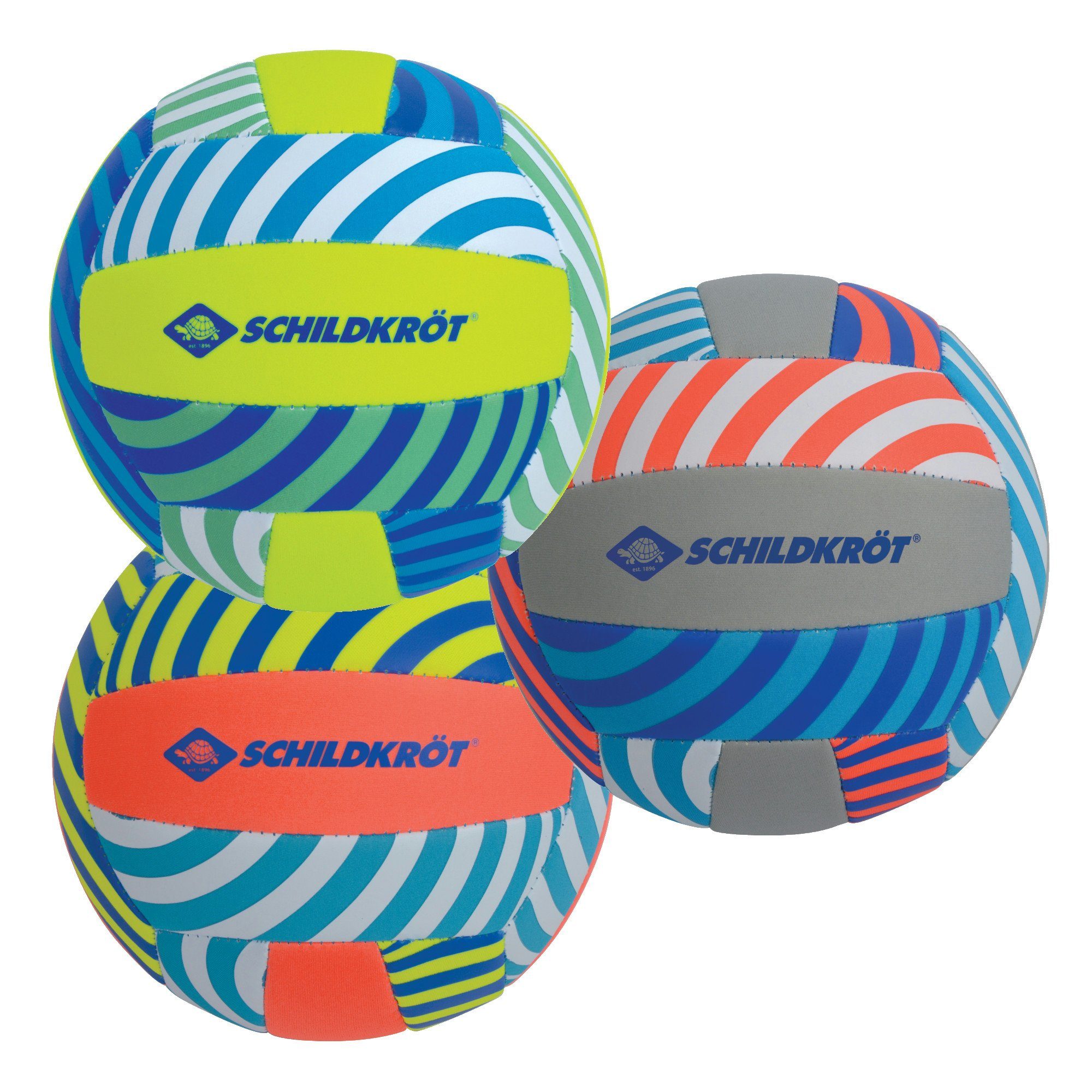 Der Beachvolleyball von Schildkröt aus strapazierfähigem Neopren besitzt einen Durchmesser von 21 Zentimetern (Размер 5). Dabei besitzt die Oberfläche eine optimale Vernähung. Diese Bälle sind in 3 unterschiedlichen trendigen sowie sommerlichen Designs erhältlich und eignen sich optimal nicht nur für Volleyball sondern bringt auch als Fußball eine menge Spaß. Die beliebten Bälle aus Neopren der Marke Schildkröt überzeugen vor allem durch ihre weiche und textile Oberfläche, die erheblich weniger Hautreizungen im Vergleich zu Kunstleder- oder Lederbällen verursacht. Dies ist zum Beispiel gerade beim Volleyball am sandigen Strand beim Baggern oder beim Fußballspielen ohne Schuhe nicht zu verachten. Für Kinder eignen sich diese tollen Bälle wegen ihrer Griffigkeit sehr gut, da sie das Fangen sowie das Greifen sehr erleichtern. Die Neoprenbälle eignen sich generell gut für das Spiel am Strand, im Wasser und sind dabei auch für das Meer geeignet, da sie salzwasserfest sind. Jeder Neopren-Beachvolleyball der Neopren Ocean Collection wird mit einem praktischen Tragenetz geliefert und kann dadurch sehr leicht transportiert werden.