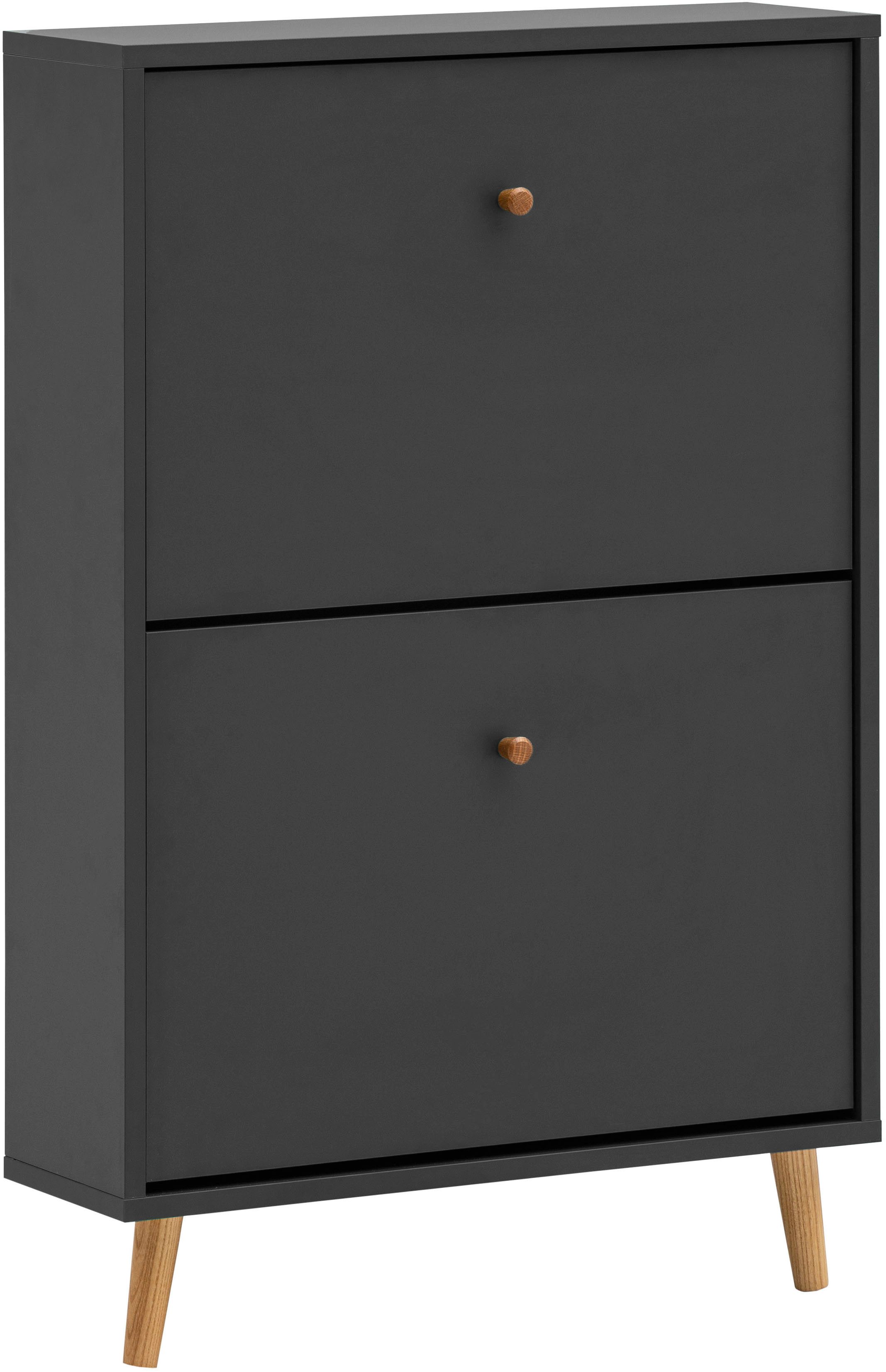 In diesem Schuhschrank »Bjarne, Breite 59 cm« von Schildmeyer hat jedes Paar Schuhe seinen Platz. Auch Accessoires wie Socken oder Handschuhe kannst du darin verstauen. Das Möbelstück besteht aus Holzwerkstoff und ist daher sehr formstabil und ausgesprochen tragfähig. Die Griffe sind stabil und nutzen sich daher nicht so schnell ab. Getragen wird der Schrank von Kegelfüßen aus Massivholz. Sie sorgen nicht nur für einen sicheren Stand, sondern sind optisch auch noch ein Hingucker. Er wurde in Deutschland gefertigt und steht daher für hohe Qualitätsstandards. Er ist Teil der Bjarne Serie. Впередe Artikel hieraus lassen sich besonders gut dazu kombinieren.