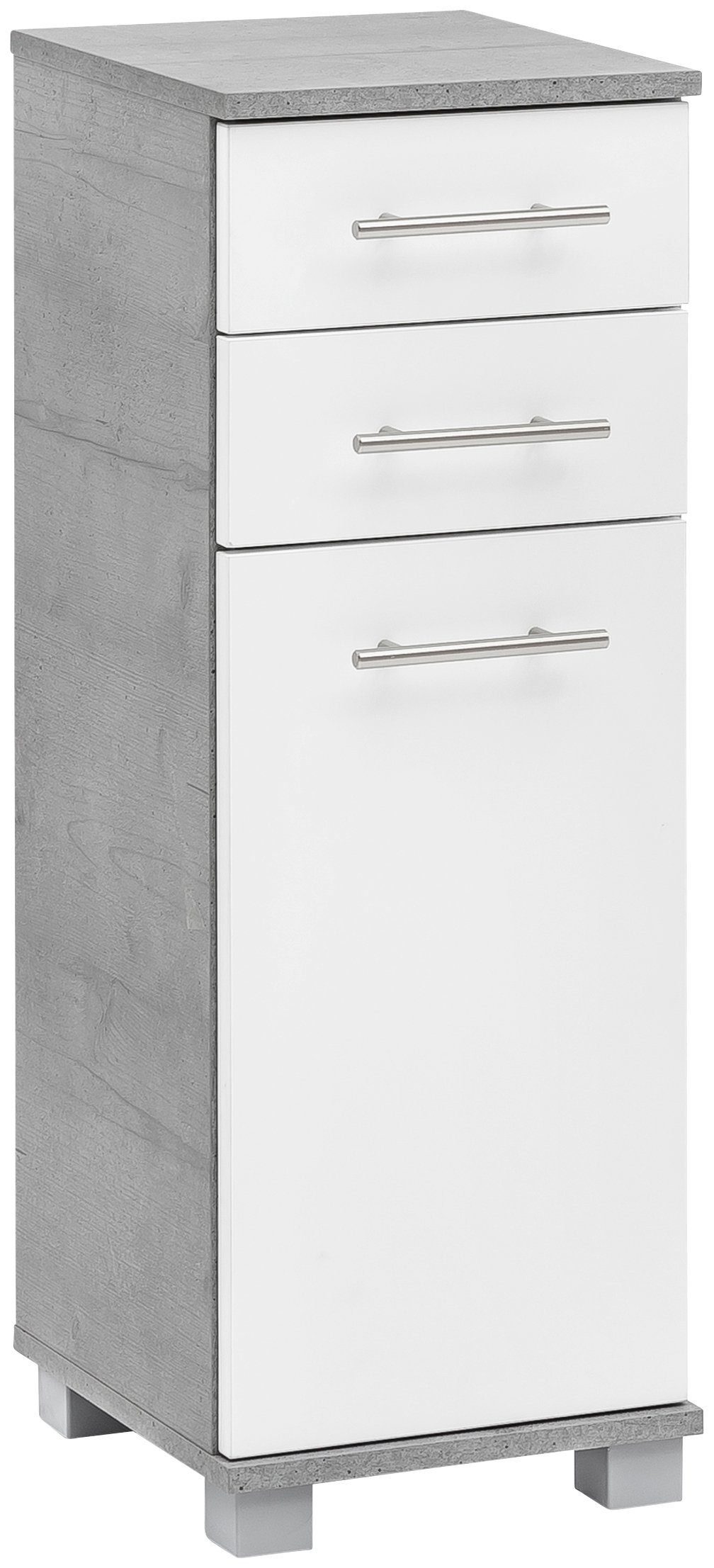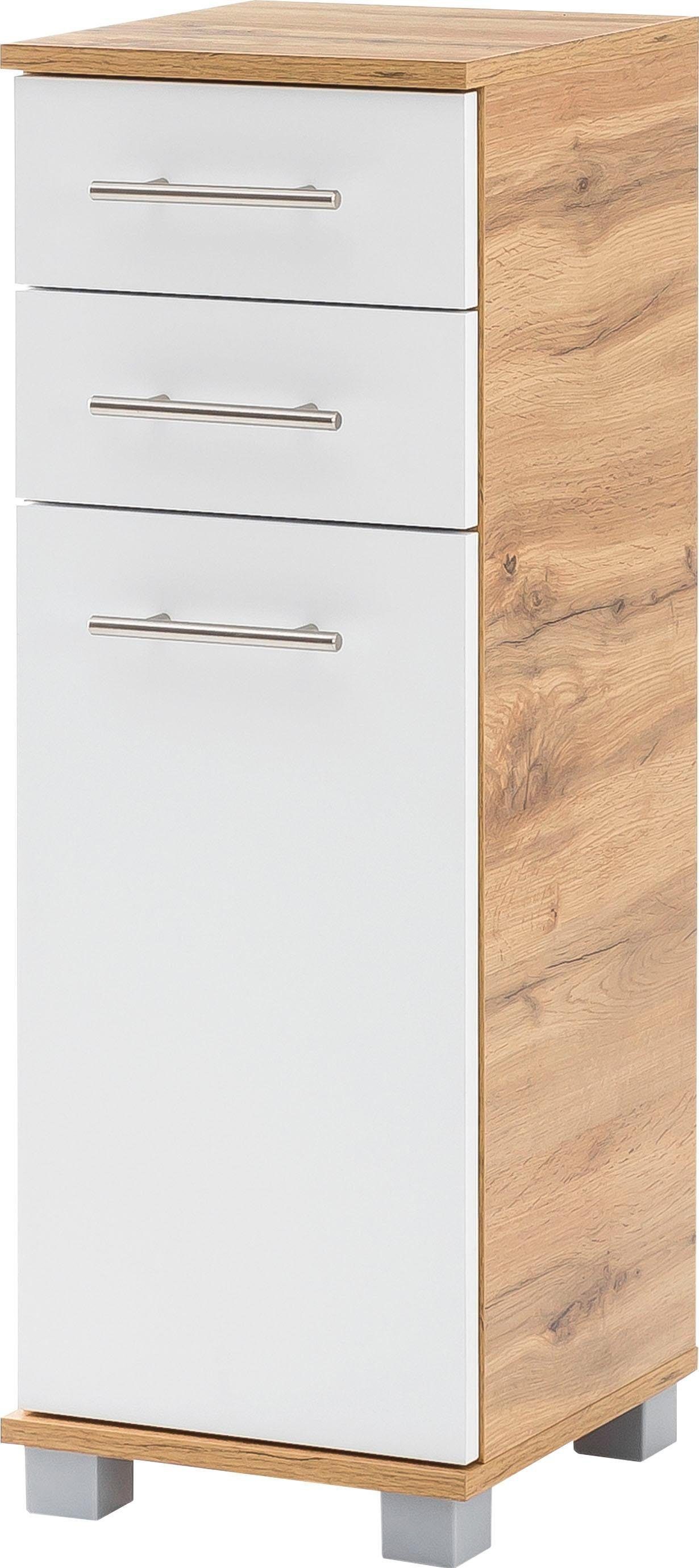 Tolles Design trifft praktische Raumlösung: Der Badezimmer-Unterschrank »Nitro« kombiniert natürliche Holzfarben und gerade Linien zu einem trendigen Badezimmerlook. Mit zwei Schubladen und einer Tür ausgestattet, bietet der Unterschrank reichlich Platz für viele kleine und größere Dinge des Badezimmeralltags.