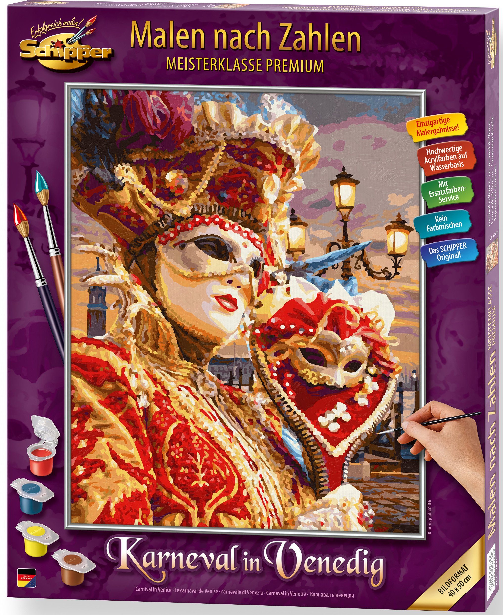 Lieferumfang | Acrylfarben auf Wasserbasis Anleitung Kontrollblatt Maltafel Pinsel |