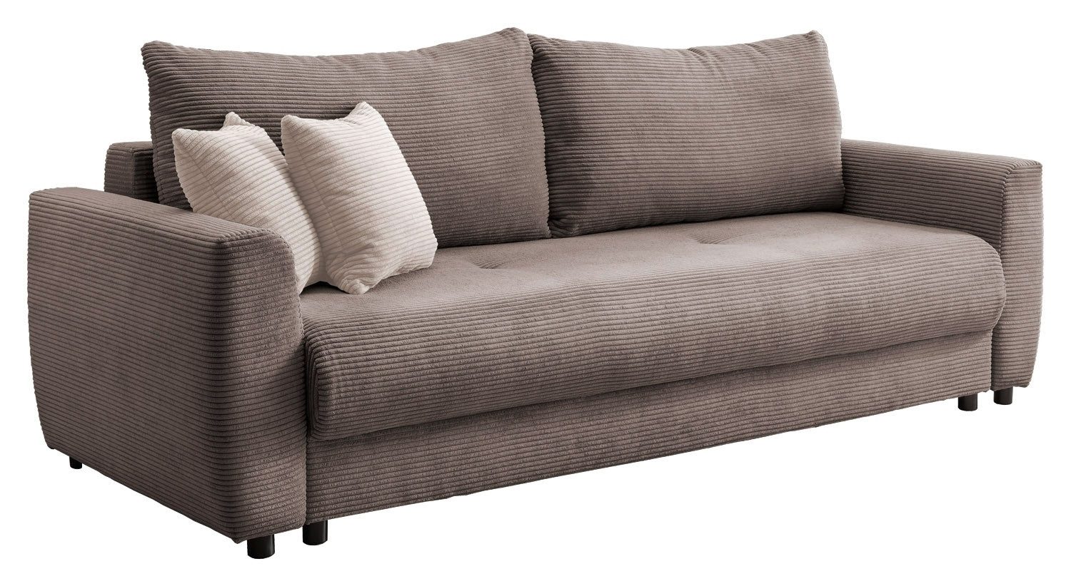 Schlafsofa ELIA, Graubraun, Cord, Bettkasten, mit Kissen