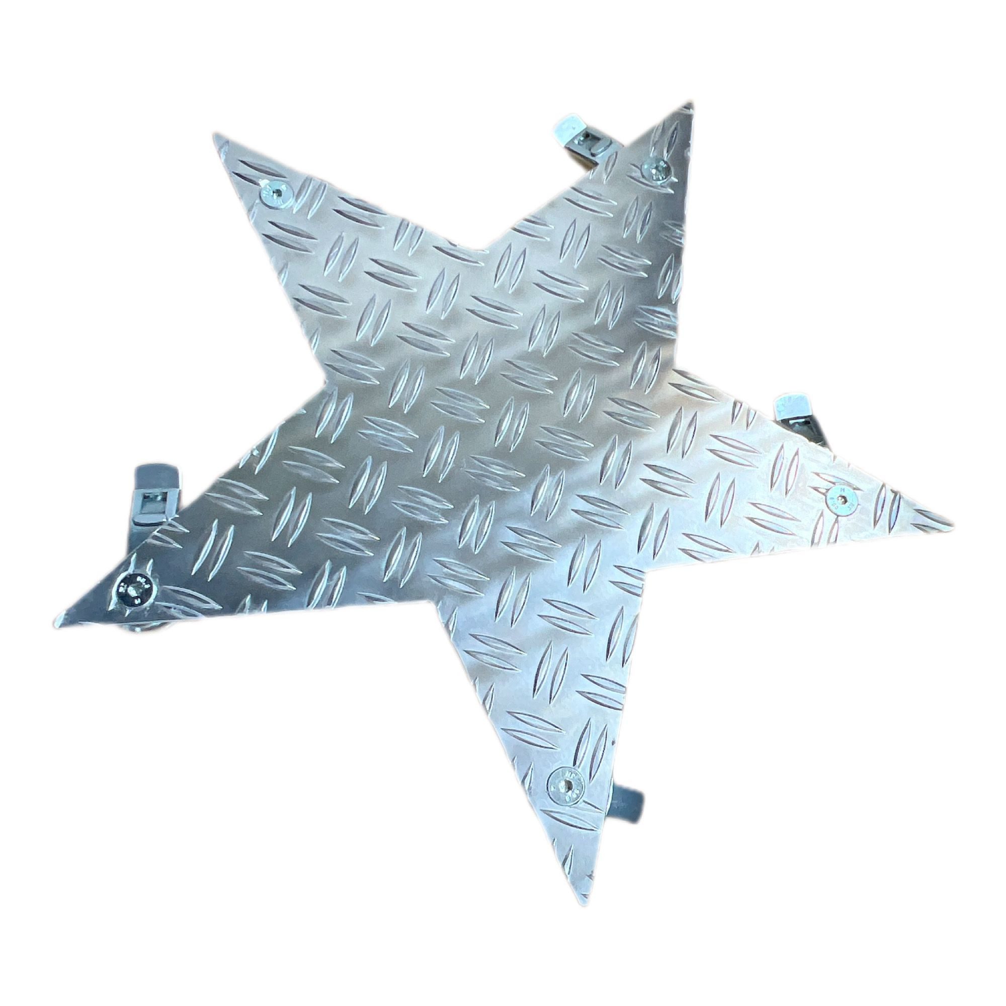 Pflanzenroller Stern-200 AluGrip-S200 Belastung bis 200kg Ideal für In- und Outdoor Trag-Platte aus Aluriffelblech Duett Warzenblech (sehr gute Korrosionsbeständigkeit Meerwasserbeständig) 3,5/5 oder 5/6,5 wählbar! je nach Punktbelastung dickere Tragplatte auswählen um ein verformen der Tragplatte zu verhindern 5x hochwertige, leise und bodenschonende Lenkrollen Thermoplastisches Gummi (TPE) mit einem Rad-Durchmesser von 50mm 2x mit Feststellbremse Thermoplastisches Gummi ist ein Material mit einem sehr geringen Schwenk und Rollwiderstand und bietet einen hohen und geräuscharmen Fahrkomfort. Die Rolle hat eine hohe chemische Beständigkeit, sogar gegen viele aggressive Medien. Einsetzbar im Temperaturbereich von -20Grad bis +60 Grad. Thermoplastisches Gummi ist bodenschonend und spurlos. Das Schwenklager besitzt einen doppelten Kugelkranz und ist mit einem Kunststoffring abgedichtet. Der Feststeller arretiert die Schwenk- und Radbewegung gleichzeitig! Gesamthöhe ca 75mm Tragfähigkeit bis 200kg! Trag-Plattendurchmesser in mm wählbar! Размер 350mm ca 360mm Durchmesser Breite x Длина 346x328mm Размер 500mm ca 520mm Durchmesser Breite x Длина 495x468mm Размер 600mm ca 620mm Durchmesser Breite x Длина 596x564mm Keine überstehende Schraubenköpfe! Handgefertigt in Baden-Deutschland! Bestens geeignet für Weihnachten zB Christbaumständer mit Baum und weitere sperrige Dekorartikel zum flexiblen bewegen! Besonderheiten Tragfähigkeit bis 200kg (Schwerlast) je nach Punktbelastung dickere Tragplatte auswählen um ein verformen der Tragplatte zu verhindern. Rutschfeste Trag-Platte aus Aluriffelblech sehr gute Korrosionsbeständigkeit (Meerwasserbeständig). Wasserablauf durch ein leicht erhöhter Stand bedingt durch die Oberflächenriffelung. Langlebiger wetterfester Pflanzenroller Blumenroller Universalroller Untersetzer Schwerlastroller Kübelroller für In und Outdoor. Sicher und mühelos zu bewegen beim saubermachen und zum Überwintern. 5x hochwertige, leise und bodenschonende Lenkrollen aus thermoplastischem Gummi (TPE) (abriebfest keine Spuren am Boden) 2x mit Feststellbremse arretiert die Schwenk- und Radbewegung gleichzeitig Sehr hochwertige Verarbeitung - keine überstehende Schraubenköpfe – sicherer Stand der Topfpflanzen. Handgefertigt in Baden-Deutschland!