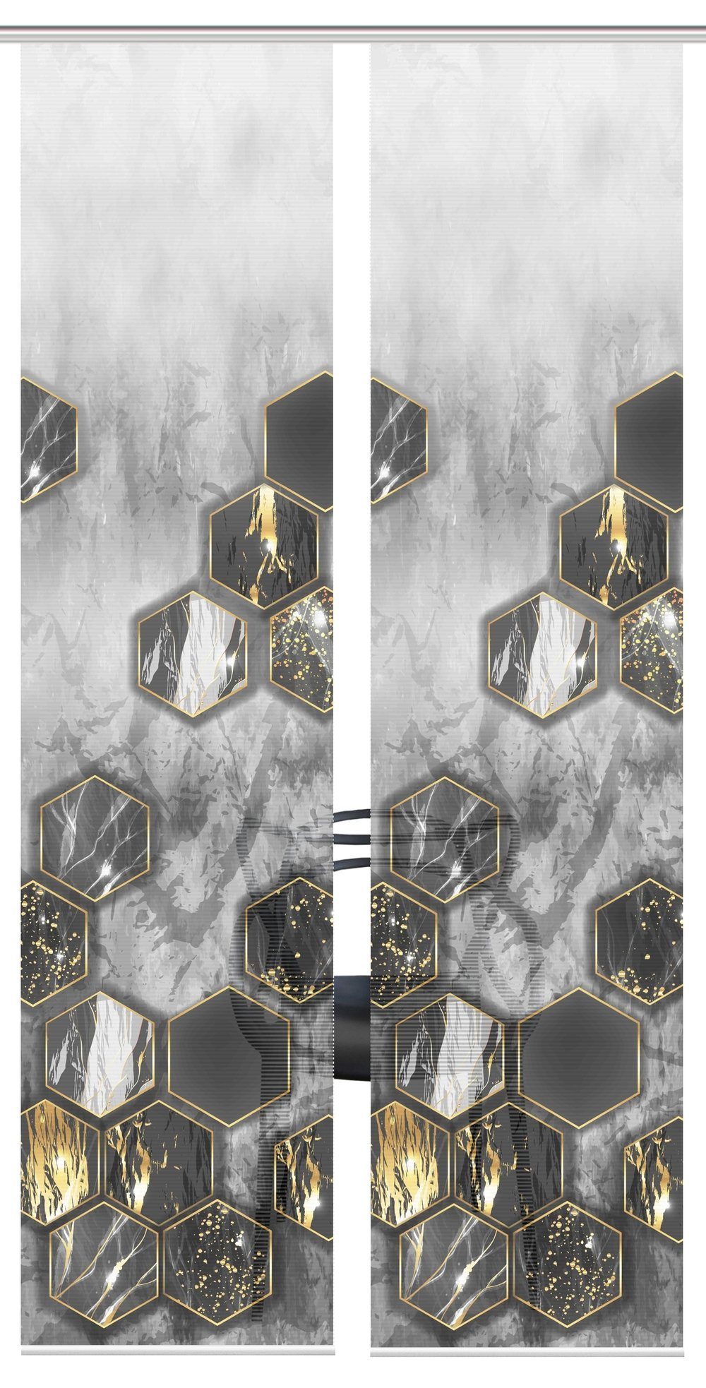 Jede Stoffbahn ist 260 cm hoch und 60 cm breit. Sie können die Höhe ganz leicht selbst auf Ihre Wunschhöhe kürzen. Die Seiten sind lasergeschnitten, was ein Ausfransen - auch nach dem Kürzen oder Waschen verhindert. Zum Lieferumfang gehören ein Paneelwagen (60 cm breite Gleitschiene, die in Ihre Gardinenschiene* geschoben wird), eine Alu-Klemmschiene unten sowie kleines Zubehör.