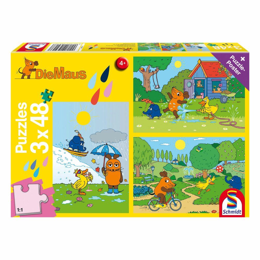 Lieferumfang | 1 Schmidt Spiele Die Maus Viel Spaß mit der Maus, Kinderpuzzle, 3 x 48 Teile, Puzzle, Puzzlespiel, Ab 4 Jahren, 56213 |