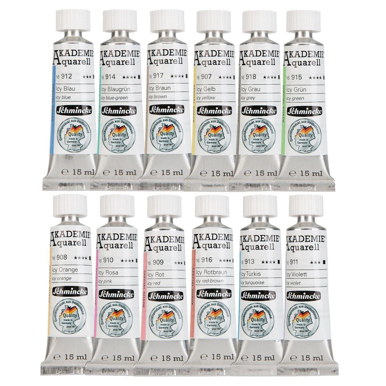 Limitierte Sonderfarben - pastellige ICY Colours, feine Künstler-Aquarellfarbe. Speziell entwickelte kühle Aquarellfarbtöne haben durch den enthaltenen Weiß-Anteil eine pastellfarbene, zart-brillante Anmutung, halblasierend bis deckend, für frische Gestaltungen, Illustrationen im angesagten, japanisch inspirierten „Kawaii-Stil“, Blumenmalerei, Handlettering und vieles mehr. Все Farben sind untereinander mischbar für weitere Farbnuancen.