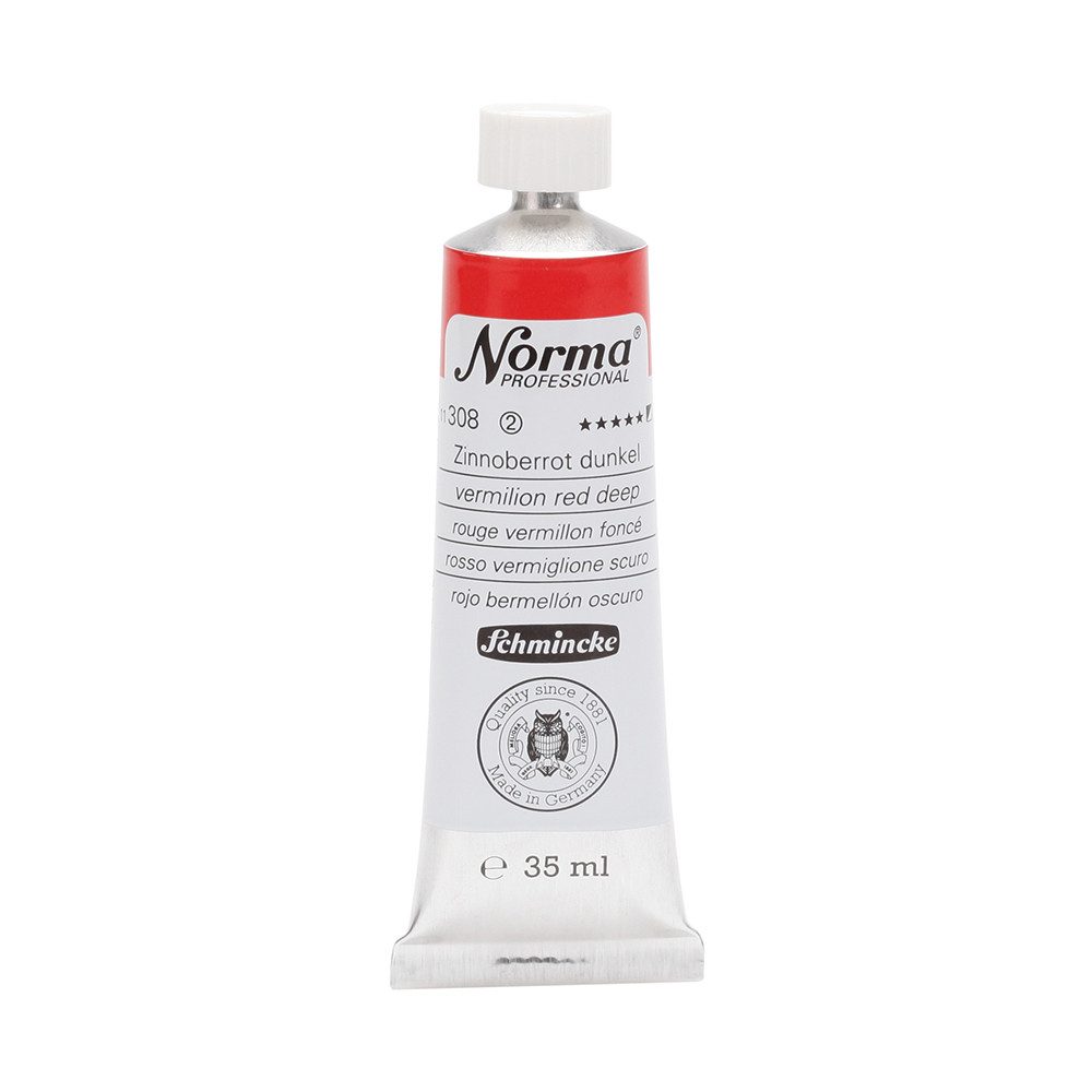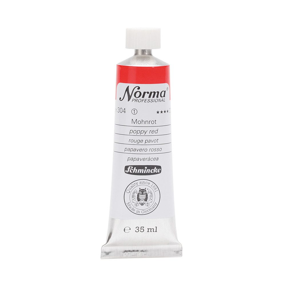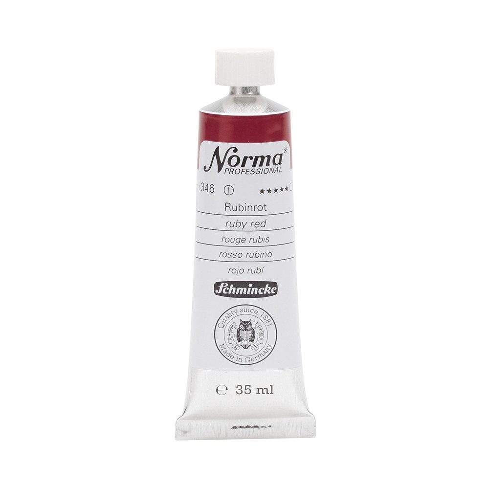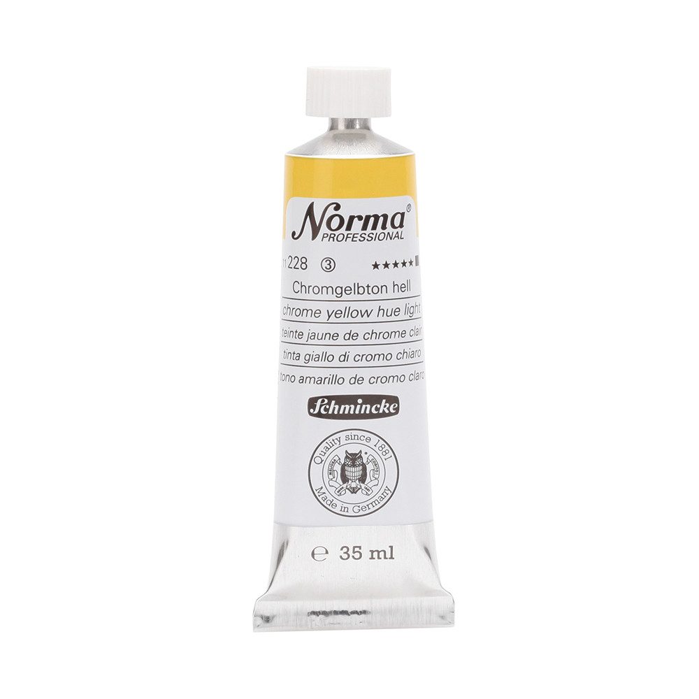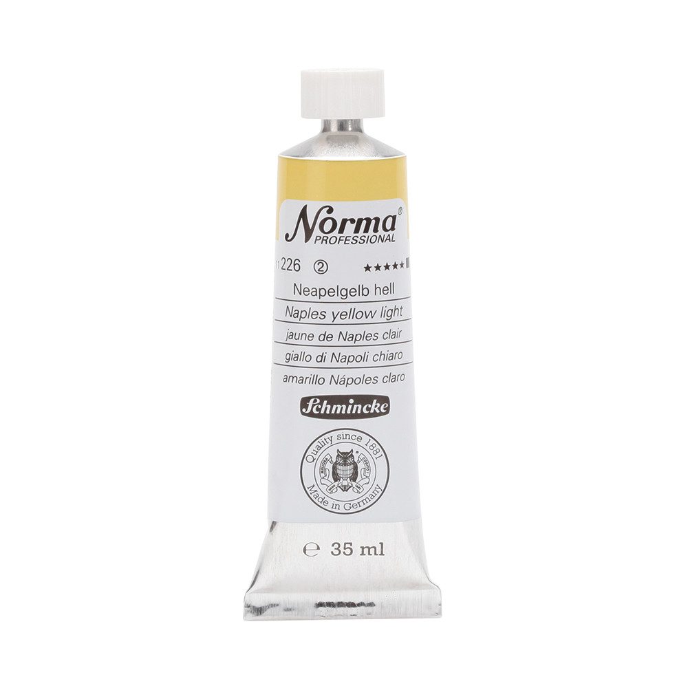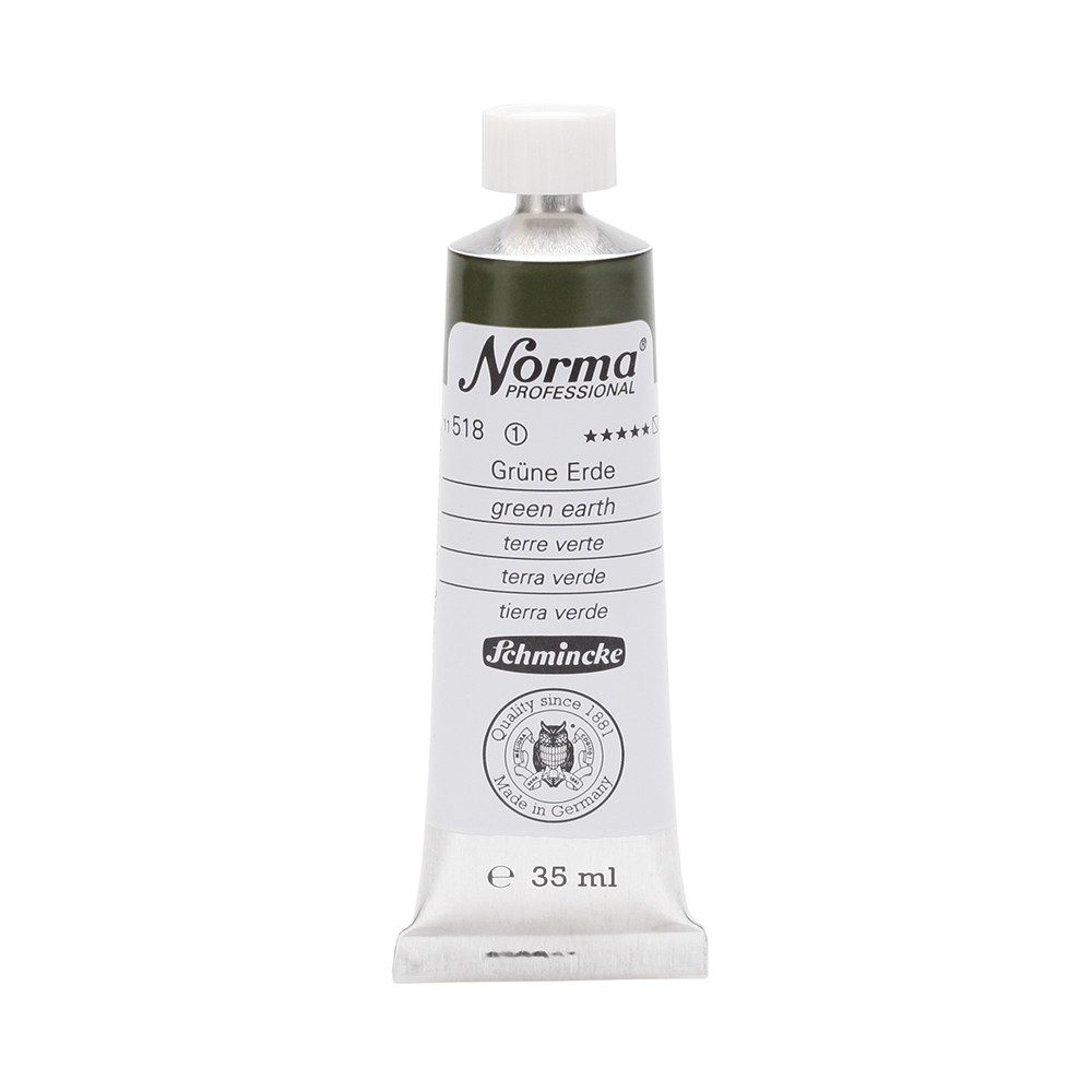 NORMA Professional ist eine moderne, umweltbewusst rezeptierte Ölfarbe feinster Qualität für die professionelle und anspruchsvolle Ölmalerei. Die sorgfältig ausbalancierte Palette, bestehend aus insgesamt 84 brillanten Farbtönen, umfasst sowohl klassische als auch moderne Farbtöne. Hierzu gehören 27 exquisite Lasurtöne sowie einige einzigartige Spezialfarben. Unter ihnen finden sich nicht nur hochlichtechte und deckende Chromgelbtöne, sondern auch Farben wie Mohnrot, Kobalttürkis, Achatbraun, Schweinfurter Grünton, Neutralschwarz, Gold, Silber und Bronze. Jeder der 84 Farbtöne verfügt dabei über höchste Lichtechtheit (4-5 звёзд). Bei der Entwicklung von NORMA Professional wurde ein besonderes Augenmerk auf die Verwendung natürlicher und nachwachsender Rohstoffe gelegt. Hochwertige, rein pflanzliche Ölmischungen sorgen für ausgezeichnete Haftung, optimale Pigmentaufnahme und minimieren die Neigung zur Gilbung. Die Verwendung erstklassiger, sowohl traditioneller als auch moderner Pigmente in höchster Konzentration garantiert eine außergewöhnliche Deckkraft, Leuchtkraft und Brillanz aller Farbtöne. Die Farben werden auf schonende Weise, traditionell auf Drei-Walzenstühlen angerieben und reifen vor der Abfüllung für 3 Monate, um eine optimale Entfaltung der Rohstoffe in der reinen Ölfarbe zu gewährleisten. Все Farben zeichnen sich durch ihre ausgewogene, cremig-buttrige Konsistenz aus, die für erstklassige Maleigenschaften und perfekte Werkspuren sorgt. Eine optimierte Rezeptur gewährleistet zudem eine verkürzte und harmonische Trocknungszeit aller Farbtöne, was zu brillanten und widerstandsfähigen Oberflächen führt. NORMA Professional kann uneingeschränkt mit allen Ölfarben von Schmincke sowie allen Öl-Hilfsmitteln gemischt und kombiniert werden.