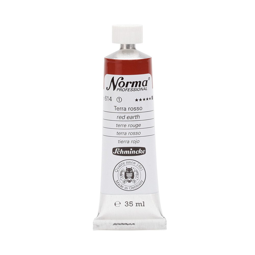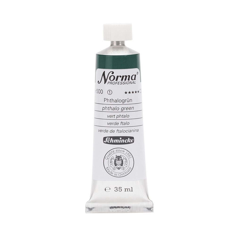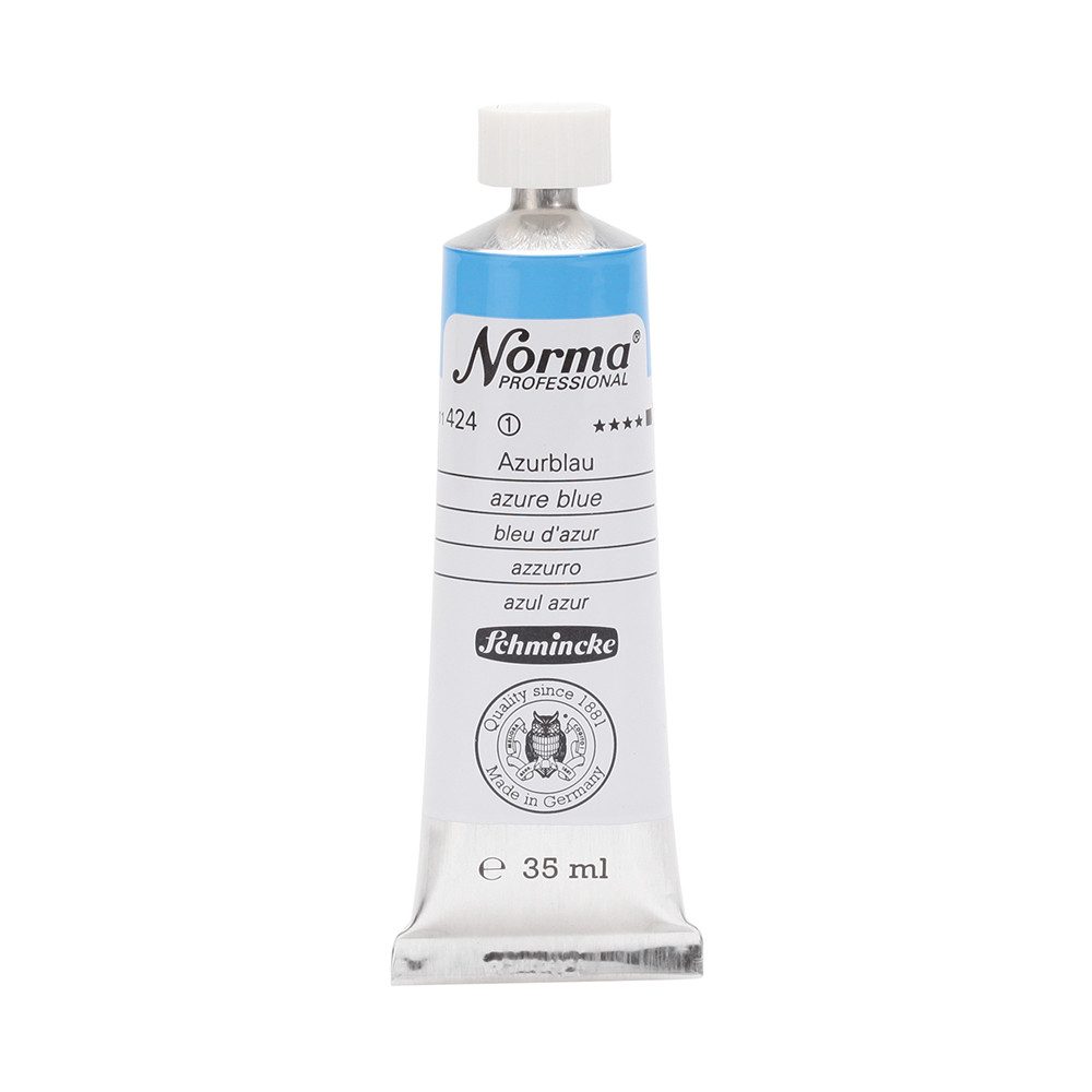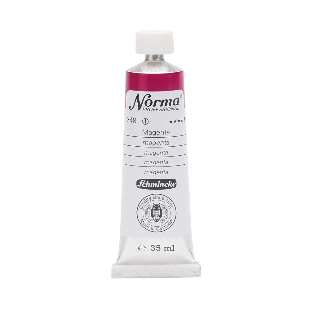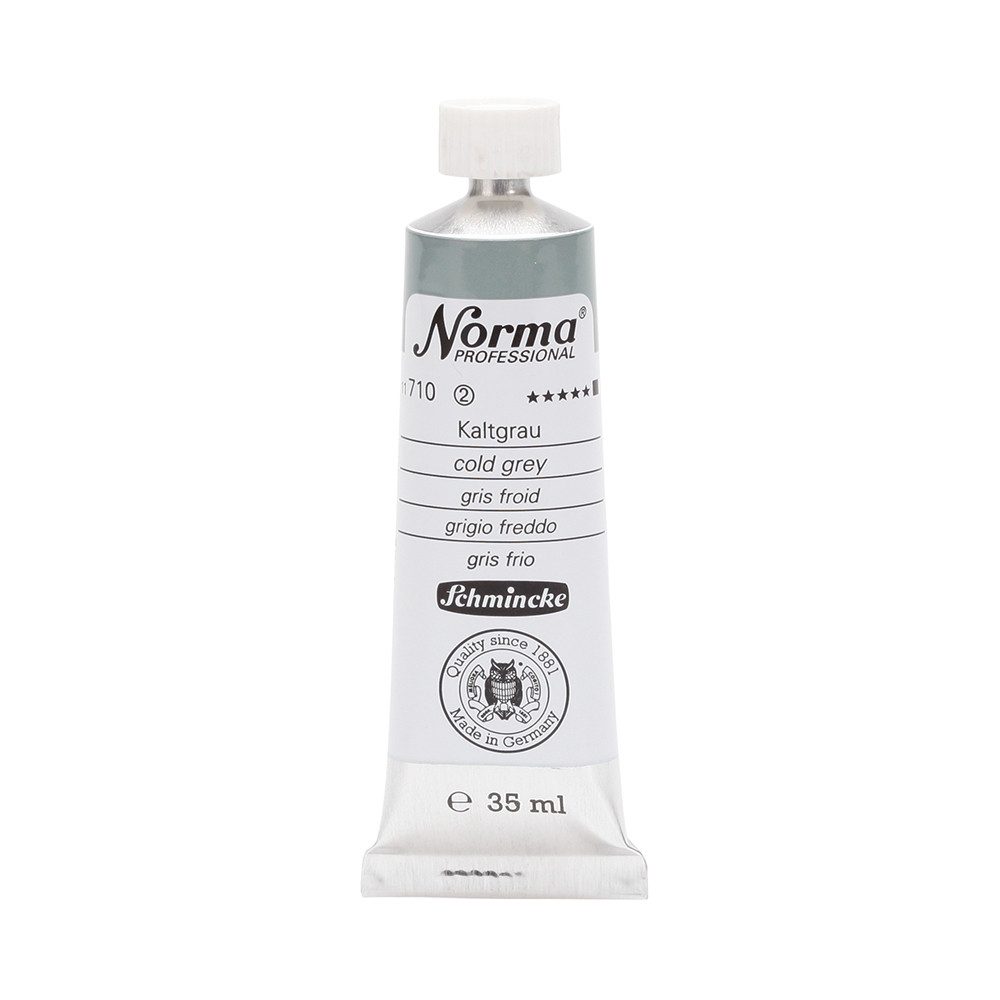 NORMA Professional ist eine moderne, umweltbewusst rezeptierte Ölfarbe feinster Qualität für die professionelle und anspruchsvolle Ölmalerei. Die sorgfältig ausbalancierte Palette, bestehend aus insgesamt 84 brillanten Farbtönen, umfasst sowohl klassische als auch moderne Farbtöne. Hierzu gehören 27 exquisite Lasurtöne sowie einige einzigartige Spezialfarben. Unter ihnen finden sich nicht nur hochlichtechte und deckende Chromgelbtöne, sondern auch Farben wie Mohnrot, Kobalttürkis, Achatbraun, Schweinfurter Grünton, Neutralschwarz, Gold, Silber und Bronze. Jeder der 84 Farbtöne verfügt dabei über höchste Lichtechtheit (4-5 звёзд). Bei der Entwicklung von NORMA Professional wurde ein besonderes Augenmerk auf die Verwendung natürlicher und nachwachsender Rohstoffe gelegt. Hochwertige, rein pflanzliche Ölmischungen sorgen für ausgezeichnete Haftung, optimale Pigmentaufnahme und minimieren die Neigung zur Gilbung. Die Verwendung erstklassiger, sowohl traditioneller als auch moderner Pigmente in höchster Konzentration garantiert eine außergewöhnliche Deckkraft, Leuchtkraft und Brillanz aller Farbtöne. Die Farben werden auf schonende Weise, traditionell auf Drei-Walzenstühlen angerieben und reifen vor der Abfüllung für 3 Monate, um eine optimale Entfaltung der Rohstoffe in der reinen Ölfarbe zu gewährleisten. Все Farben zeichnen sich durch ihre ausgewogene, cremig-buttrige Konsistenz aus, die für erstklassige Maleigenschaften und perfekte Werkspuren sorgt. Eine optimierte Rezeptur gewährleistet zudem eine verkürzte und harmonische Trocknungszeit aller Farbtöne, was zu brillanten und widerstandsfähigen Oberflächen führt. NORMA Professional kann uneingeschränkt mit allen Ölfarben von Schmincke sowie allen Öl-Hilfsmitteln gemischt und kombiniert werden.