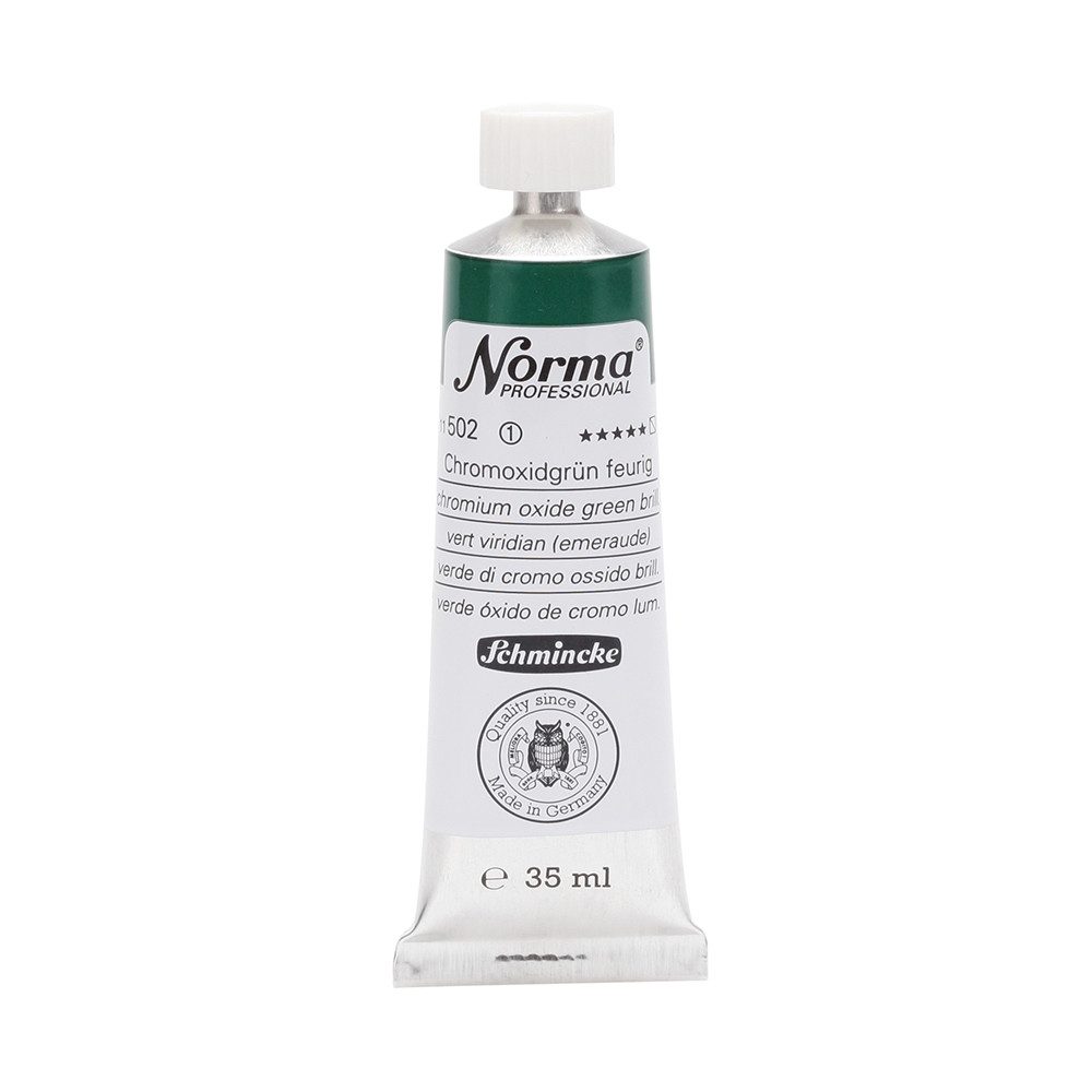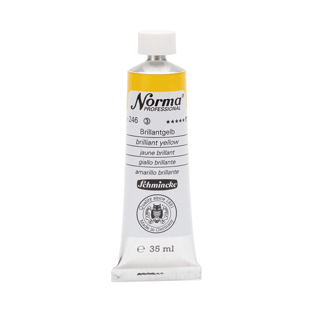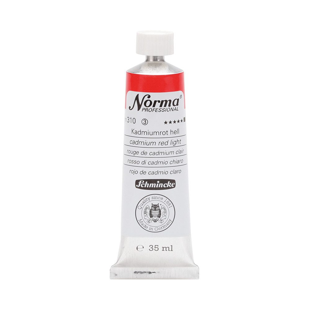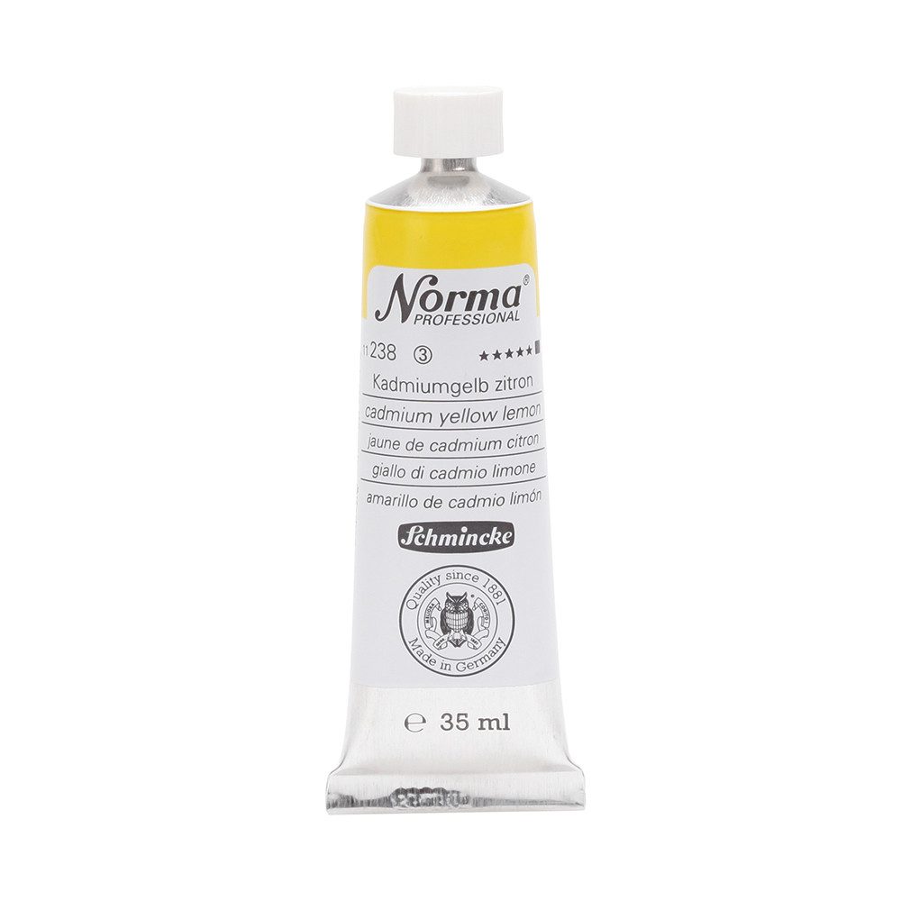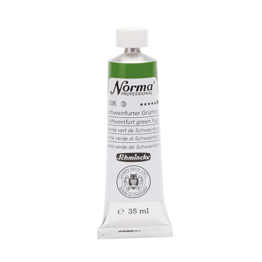 NORMA Professional ist eine moderne, umweltbewusst rezeptierte Ölfarbe feinster Qualität für die professionelle und anspruchsvolle Ölmalerei. Die sorgfältig ausbalancierte Palette, bestehend aus insgesamt 84 brillanten Farbtönen, umfasst sowohl klassische als auch moderne Farbtöne. Hierzu gehören 27 exquisite Lasurtöne sowie einige einzigartige Spezialfarben. Unter ihnen finden sich nicht nur hochlichtechte und deckende Chromgelbtöne, sondern auch Farben wie Mohnrot, Kobalttürkis, Achatbraun, Schweinfurter Grünton, Neutralschwarz, Gold, Silber und Bronze. Jeder der 84 Farbtöne verfügt dabei über höchste Lichtechtheit (4-5 звёзд). Bei der Entwicklung von NORMA Professional wurde ein besonderes Augenmerk auf die Verwendung natürlicher und nachwachsender Rohstoffe gelegt. Hochwertige, rein pflanzliche Ölmischungen sorgen für ausgezeichnete Haftung, optimale Pigmentaufnahme und minimieren die Neigung zur Gilbung. Die Verwendung erstklassiger, sowohl traditioneller als auch moderner Pigmente in höchster Konzentration garantiert eine außergewöhnliche Deckkraft, Leuchtkraft und Brillanz aller Farbtöne. Die Farben werden auf schonende Weise, traditionell auf Drei-Walzenstühlen angerieben und reifen vor der Abfüllung für 3 Monate, um eine optimale Entfaltung der Rohstoffe in der reinen Ölfarbe zu gewährleisten. Все Farben zeichnen sich durch ihre ausgewogene, cremig-buttrige Konsistenz aus, die für erstklassige Maleigenschaften und perfekte Werkspuren sorgt. Eine optimierte Rezeptur gewährleistet zudem eine verkürzte und harmonische Trocknungszeit aller Farbtöne, was zu brillanten und widerstandsfähigen Oberflächen führt. NORMA Professional kann uneingeschränkt mit allen Ölfarben von Schmincke sowie allen Öl-Hilfsmitteln gemischt und kombiniert werden.