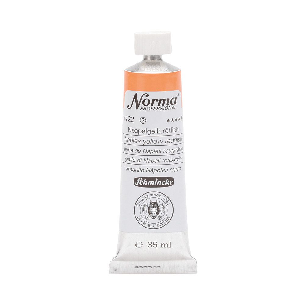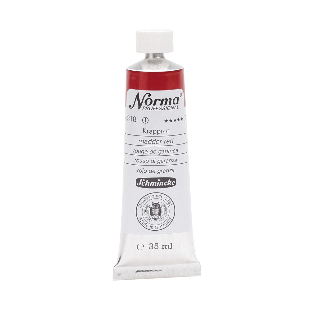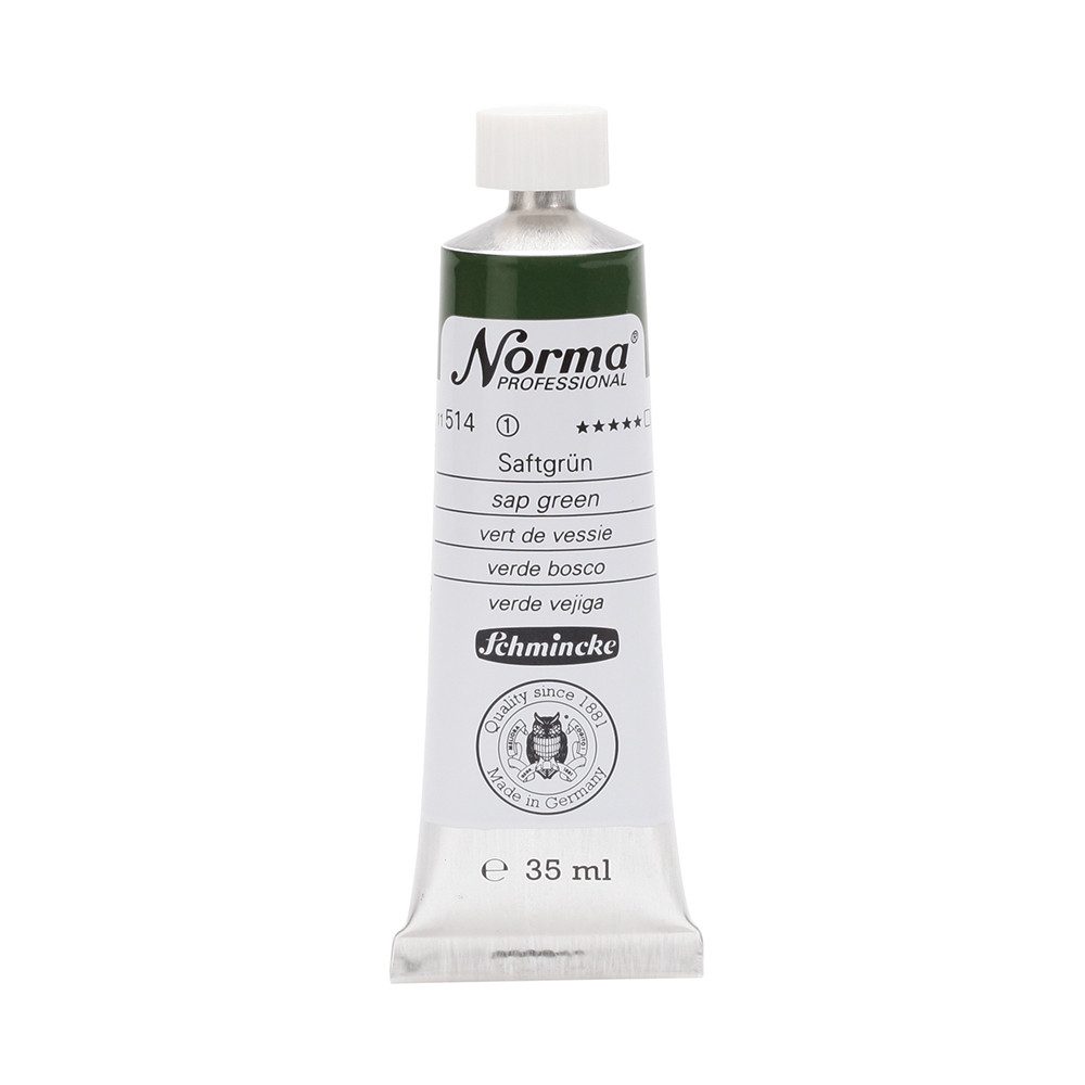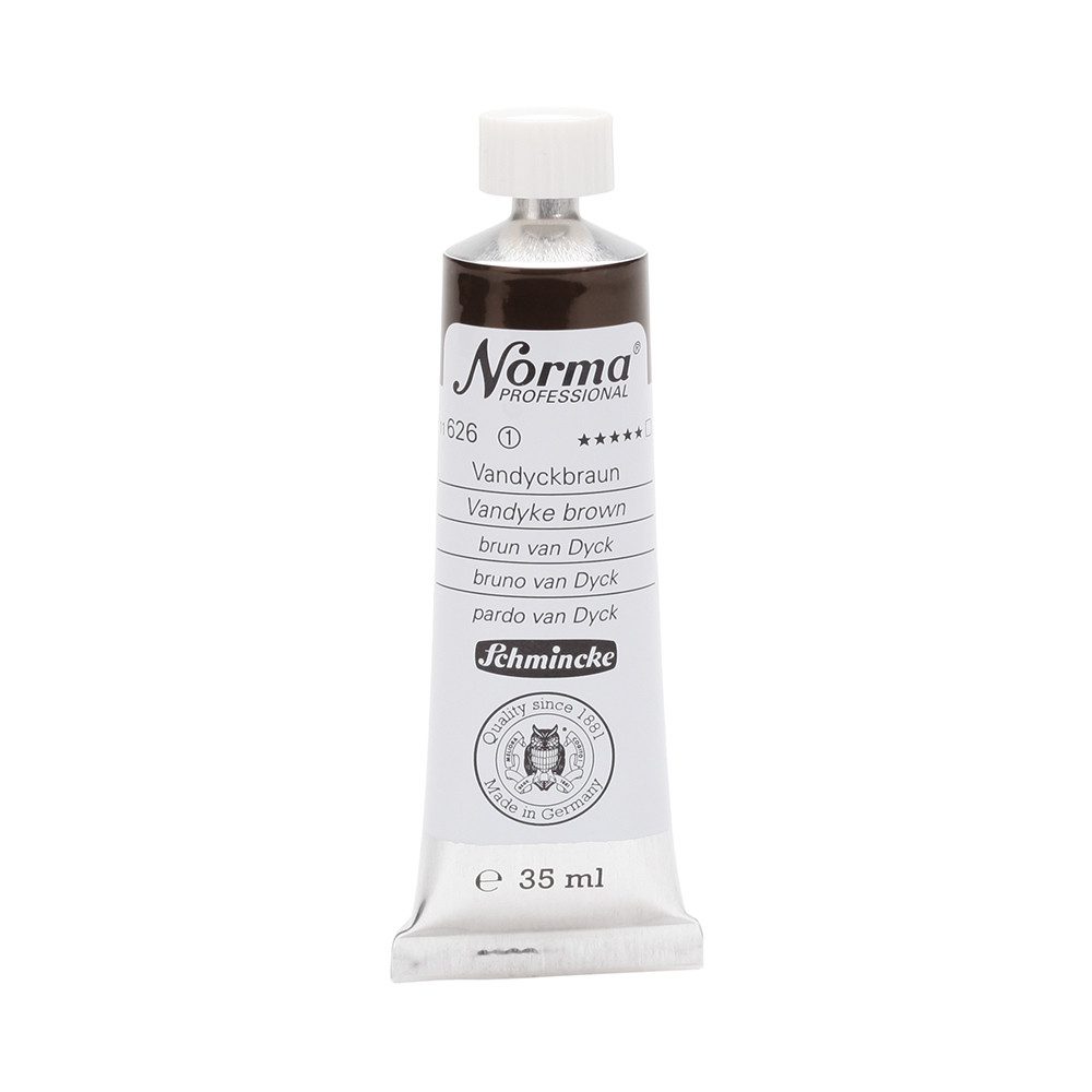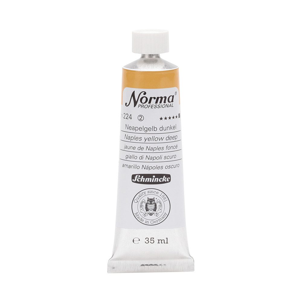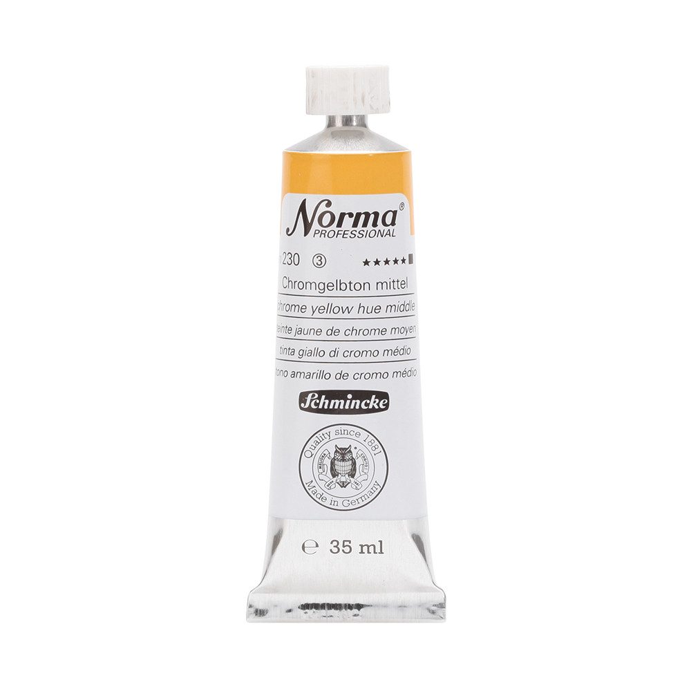 NORMA Professional ist eine moderne, umweltbewusst rezeptierte Ölfarbe feinster Qualität für die professionelle und anspruchsvolle Ölmalerei. Die sorgfältig ausbalancierte Palette, bestehend aus insgesamt 84 brillanten Farbtönen, umfasst sowohl klassische als auch moderne Farbtöne. Hierzu gehören 27 exquisite Lasurtöne sowie einige einzigartige Spezialfarben. Unter ihnen finden sich nicht nur hochlichtechte und deckende Chromgelbtöne, sondern auch Farben wie Mohnrot, Kobalttürkis, Achatbraun, Schweinfurter Grünton, Neutralschwarz, Gold, Silber und Bronze. Jeder der 84 Farbtöne verfügt dabei über höchste Lichtechtheit (4-5 звёзд). Bei der Entwicklung von NORMA Professional wurde ein besonderes Augenmerk auf die Verwendung natürlicher und nachwachsender Rohstoffe gelegt. Hochwertige, rein pflanzliche Ölmischungen sorgen für ausgezeichnete Haftung, optimale Pigmentaufnahme und minimieren die Neigung zur Gilbung. Die Verwendung erstklassiger, sowohl traditioneller als auch moderner Pigmente in höchster Konzentration garantiert eine außergewöhnliche Deckkraft, Leuchtkraft und Brillanz aller Farbtöne. Die Farben werden auf schonende Weise, traditionell auf Drei-Walzenstühlen angerieben und reifen vor der Abfüllung für 3 Monate, um eine optimale Entfaltung der Rohstoffe in der reinen Ölfarbe zu gewährleisten. Все Farben zeichnen sich durch ihre ausgewogene, cremig-buttrige Konsistenz aus, die für erstklassige Maleigenschaften und perfekte Werkspuren sorgt. Eine optimierte Rezeptur gewährleistet zudem eine verkürzte und harmonische Trocknungszeit aller Farbtöne, was zu brillanten und widerstandsfähigen Oberflächen führt. NORMA Professional kann uneingeschränkt mit allen Ölfarben von Schmincke sowie allen Öl-Hilfsmitteln gemischt und kombiniert werden.
