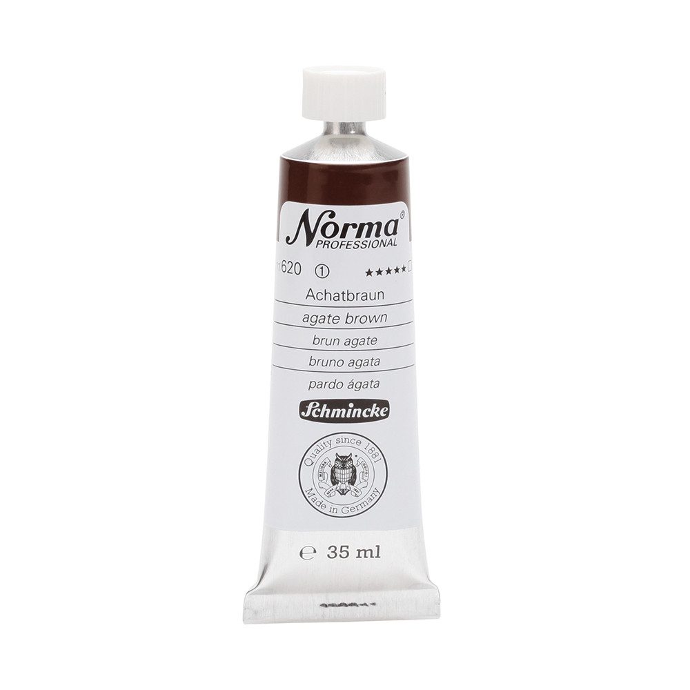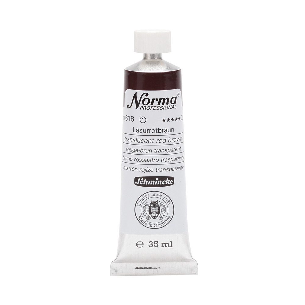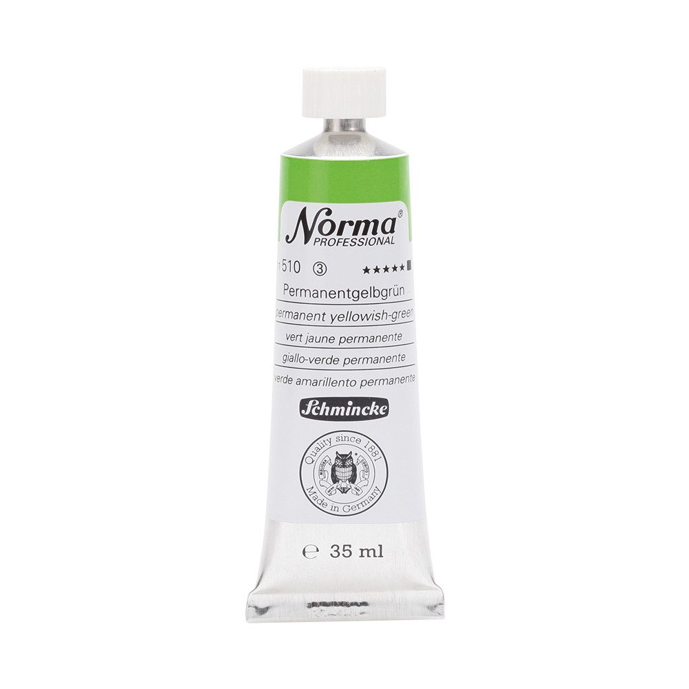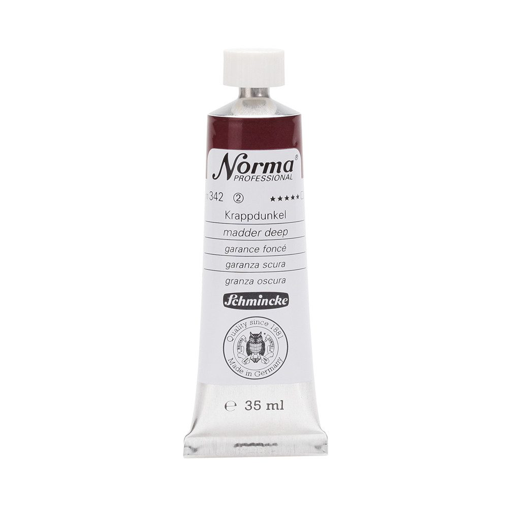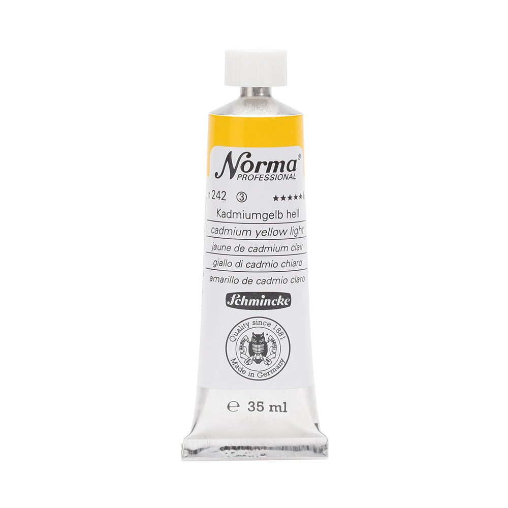 NORMA Professional ist eine moderne, umweltbewusst rezeptierte Ölfarbe feinster Qualität für die professionelle und anspruchsvolle Ölmalerei. Die sorgfältig ausbalancierte Palette, bestehend aus insgesamt 84 brillanten Farbtönen, umfasst sowohl klassische als auch moderne Farbtöne. Hierzu gehören 27 exquisite Lasurtöne sowie einige einzigartige Spezialfarben. Unter ihnen finden sich nicht nur hochlichtechte und deckende Chromgelbtöne, sondern auch Farben wie Mohnrot, Kobalttürkis, Achatbraun, Schweinfurter Grünton, Neutralschwarz, Gold, Silber und Bronze. Jeder der 84 Farbtöne verfügt dabei über höchste Lichtechtheit (4-5 звёзд). Bei der Entwicklung von NORMA Professional wurde ein besonderes Augenmerk auf die Verwendung natürlicher und nachwachsender Rohstoffe gelegt. Hochwertige, rein pflanzliche Ölmischungen sorgen für ausgezeichnete Haftung, optimale Pigmentaufnahme und minimieren die Neigung zur Gilbung. Die Verwendung erstklassiger, sowohl traditioneller als auch moderner Pigmente in höchster Konzentration garantiert eine außergewöhnliche Deckkraft, Leuchtkraft und Brillanz aller Farbtöne. Die Farben werden auf schonende Weise, traditionell auf Drei-Walzenstühlen angerieben und reifen vor der Abfüllung für 3 Monate, um eine optimale Entfaltung der Rohstoffe in der reinen Ölfarbe zu gewährleisten. Все Farben zeichnen sich durch ihre ausgewogene, cremig-buttrige Konsistenz aus, die für erstklassige Maleigenschaften und perfekte Werkspuren sorgt. Eine optimierte Rezeptur gewährleistet zudem eine verkürzte und harmonische Trocknungszeit aller Farbtöne, was zu brillanten und widerstandsfähigen Oberflächen führt. NORMA Professional kann uneingeschränkt mit allen Ölfarben von Schmincke sowie allen Öl-Hilfsmitteln gemischt und kombiniert werden.