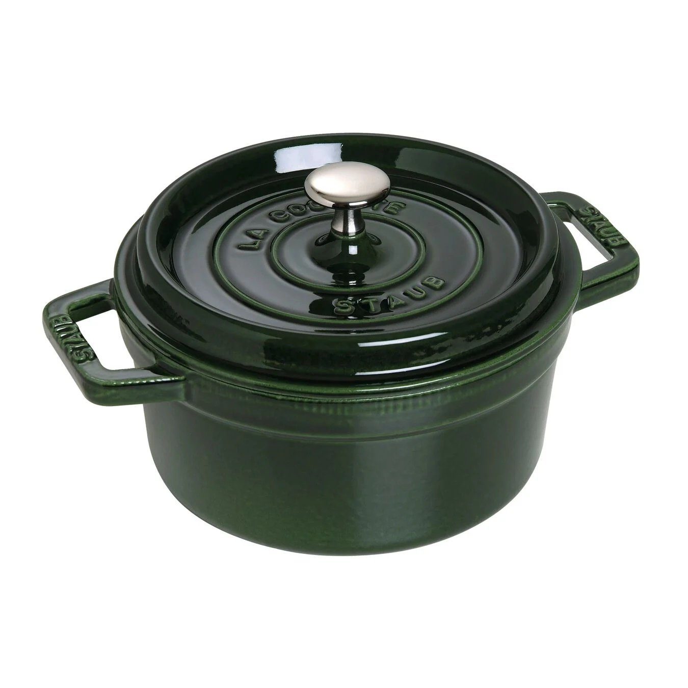 Staub La Cocotte Cocotte 22 cm, rund, Basilikum-Grün, Gusseisen Beschreibung Mit dieser runden Cocotte aus der beliebten Serie La Cocotte gelingen Ihnen alle Arten von Schmorgerichten, Eintöpfen und sogar Nachspeisen. Beim Schmoren ist es relevant, dass alle Zutaten gleichmäßig und schonend erhitzt werden. Das Gusseisen, aus dem der Schmortopf besteht, speichert Wärme sehr gut und gibt sie einheitlich wieder ab. Verstärkt wird dieser Schmoreffekt noch durch die mattschwarze Emaillebeschichtung im Inneren des Bräters, die zudem den Geschmack der Speisen unterstreicht. Durch regelmäßige Benutzung intensiviert sich die Wirkung der Emaillierung sogar noch. So zaubern Anfänger, Hobbyköche und Profis mit der Cocotte ein schmackhaftes Schmorgericht auf den Tisch. Dank ihrer Farbe in Basilikumgrün wirkt diese Cocotte auch auf dem Esstisch sehr dekorativ und sorgt für einen ansprechenden Farbtupfer. Die Cocotte zeichnet sich aufgrund des verwendeten Materials außerdem durch ihre Robustheit aus. Darüber hinaus ist das Gusseisen sehr pflegeleicht und eignet sich für alle Typen von Herden, inklusive Induktionsherden. Mit einem Durchmesser von 22 cm und einem Volumen von 2,6 l ist die Cocotte in erster Linie für die Zubereitung von Beilagen und Eintöpfen passend. Sie können mit dieser Cocotte von Staub Ihre Lieben mit schmackhaften, leicht zubereiteten Schmorgerichten verwöhnen. Ideal zum Anbraten und langsamen Garen von Fleisch, Fisch oder Gemüse Saftiges und zartes Kochergebnis durch die spezielle Tropfenstruktur im Deckel Die schwarzmatte Innenemaillierung eignet sich zum besonders krossen Anbraten und ist besonders strapazierfähig Für alle Herdarten inkl. Induktion geeignet, auch im Backofen/Grill einsetzbar Intensiver Farbton durch die besondere Majolika Emaillierung Eigenschaften Farbe: Basilikum-Grün Hitzebeständigkeit: 240,00 ºC Kältebeständigkeit: -20,00 ºC Material: Gusseisen Deckel vorhanden: Ja Induktion: Ja Backofen geeignet: Ja Gefrierschrank geeignet: Ja Herdplatten geeignet: Ja spülmaschinengeeignet: Ja Lieferumfang: 1 Abmessungen Gewicht netto: 4,02 kg Volumen: 2,60 l Produktlänge: 28,40 cm Produktbreite: 22,00 cm Produkthöhe: 14,70 cm Produkthöhe ohne Deckel: 9,90 cm Oberer Durchmesser: 22,00 cm Bodendurchmesser: 17,10 cm Grifflänge: 3,00 cm
