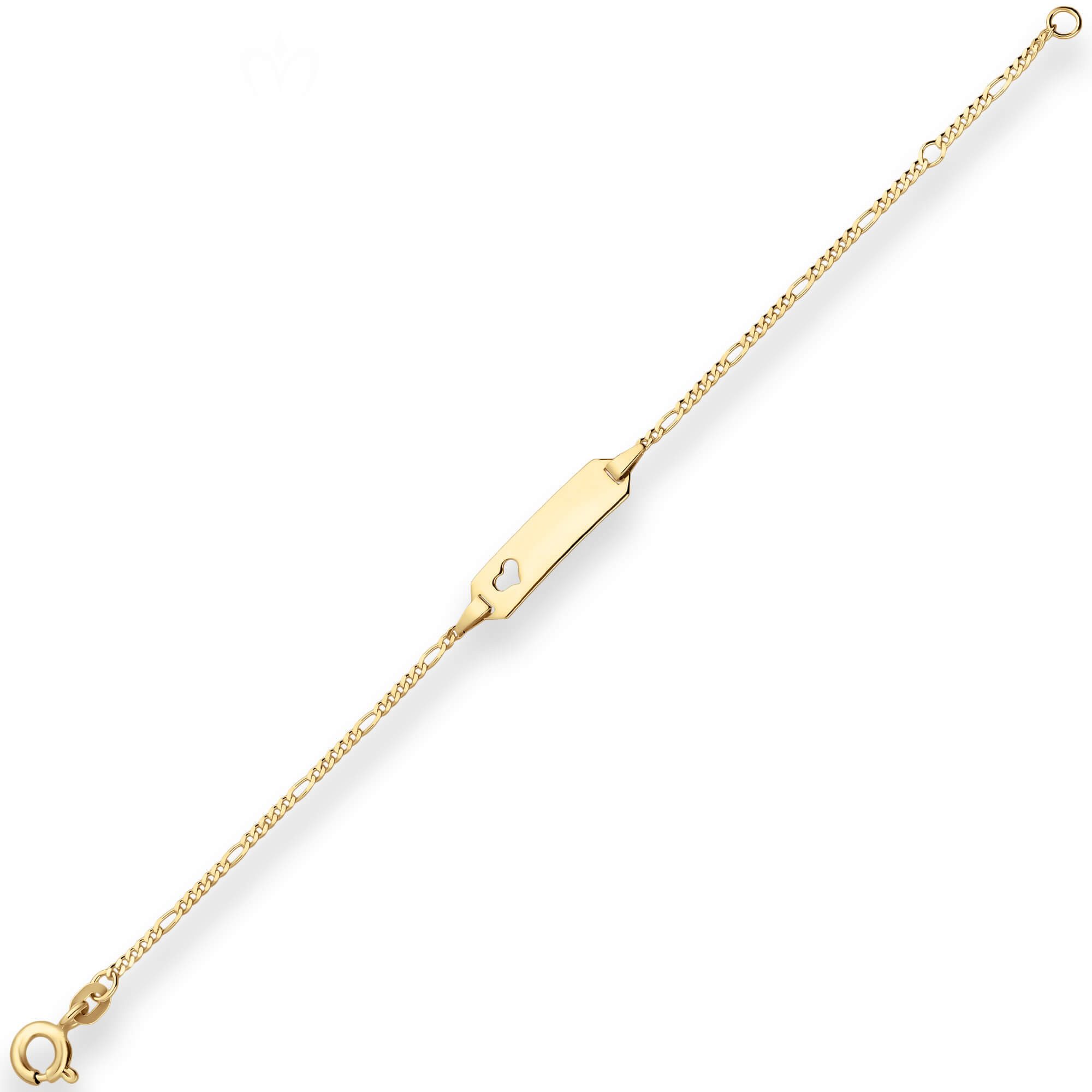 1,5mm Id-Armband Figarokette diamantiert Herz 585 Gelbgold 14cm
