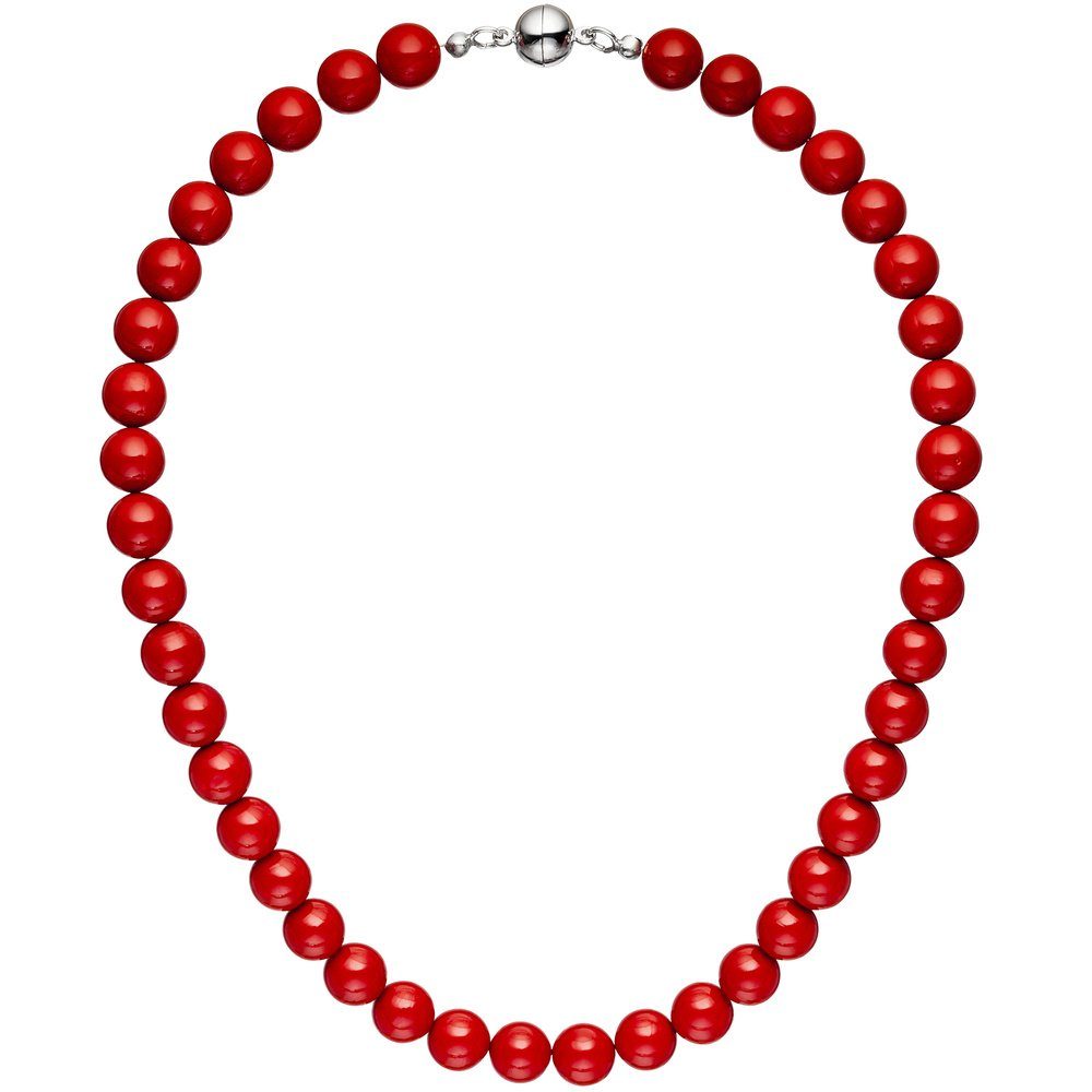 Kette mit roten farbveredelten Muschelkernperlen und Magnet-Schließe aus Metall