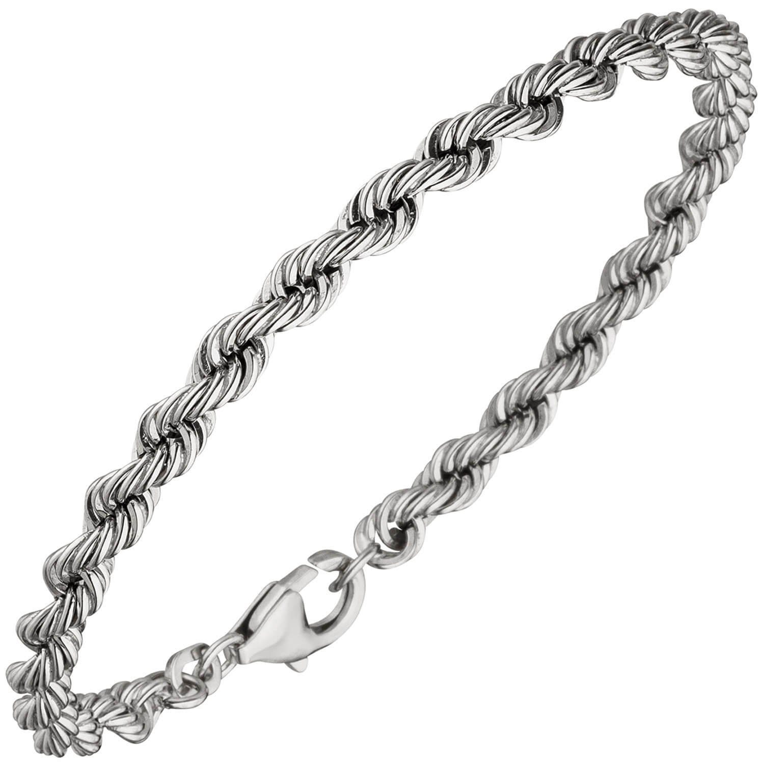 Massives Kordelarmband aus 925 Sterlingsilber, rhodiniert, mit Karabinerverschluss