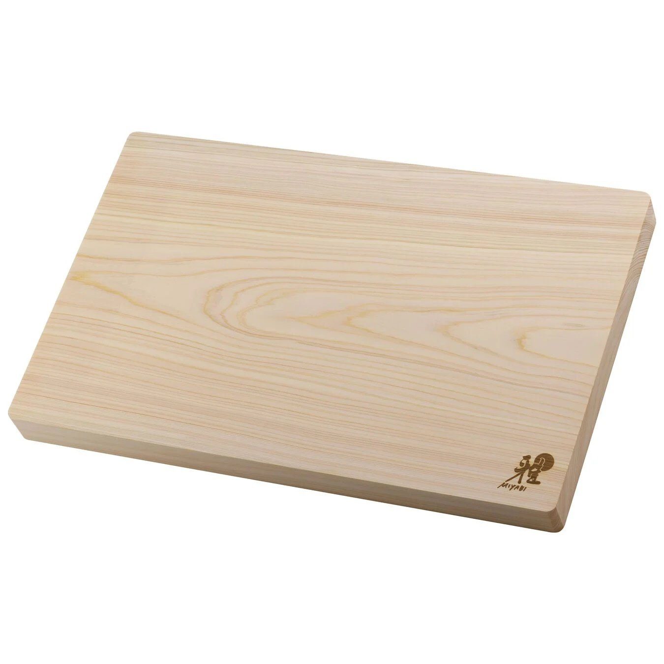 MIYABI Hinoki Cutting Boards Schneidbrett 40 cm x 25 cm, Hinoki Holz Beschreibung Um ein Messer der Extraklasse optimal zu nutzen, gehört auch eine passende Schneidunterlage zum Arbeiten dazu. Das Schneidbrett Hinoki ist ein solches Brett. Mit den Maßen 40 cm x 25 cm x 3 cm hat es eine ideale Размер für alle Schneid- und Vorbereitungsarbeiten in der Küche. Es schont außerdem die empfindliche Schneide Ihrer Messer. Das Schneidbrett ist aus dem Holz einer japanischen Zypressenart hergestellt, das sich durch sein geringes Gewicht auszeichnet. Das Brett ist nicht verleimt, sondern aus einem einzigen Holzstück gefertigt. Das Holz ist ungewöhnlich langlebig und besonders widerstandsfähig. Der Name Hinoki bedeutet „Holz des Feuers“. An einer Seite ist das große Schneidbrett mit einer praktischen Saftrinne versehen, die eventuell entstehende Flüssigkeiten auffängt. Auch die Feuchtigkeitsresistenz ist ein wichtiges Merkmal. Auf dieser großen Schneidunterlage von Miyabi kosten Sie das Leistungsvermögen eines Messers optimal aus und verlängern gleichzeitig die Lebensdauer der empfindlichen Schneide. Ideale Schneidunterlage aus Hinokiholz Hohe Härte und Festigkeit der Oberfläche Lange Lebensdauer Eigenschaften Farbe: Braun Material: Hinoki Holz Lieferumfang: 1 Abmessungen Gewicht netto: 1,49 kg Produktlänge: 40,00 cm Produktbreite: 25,00 cm Produkthöhe: 3,00 cm