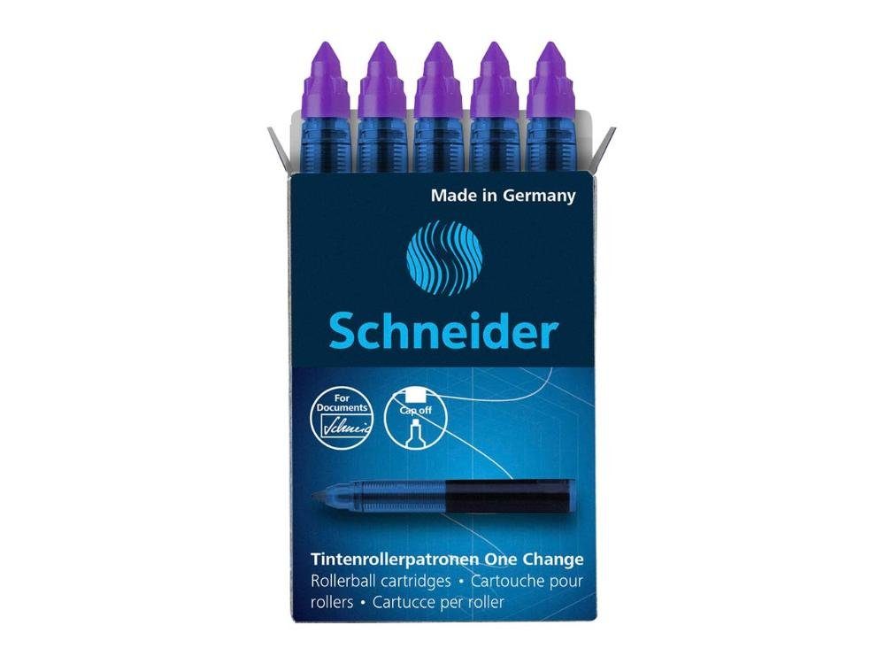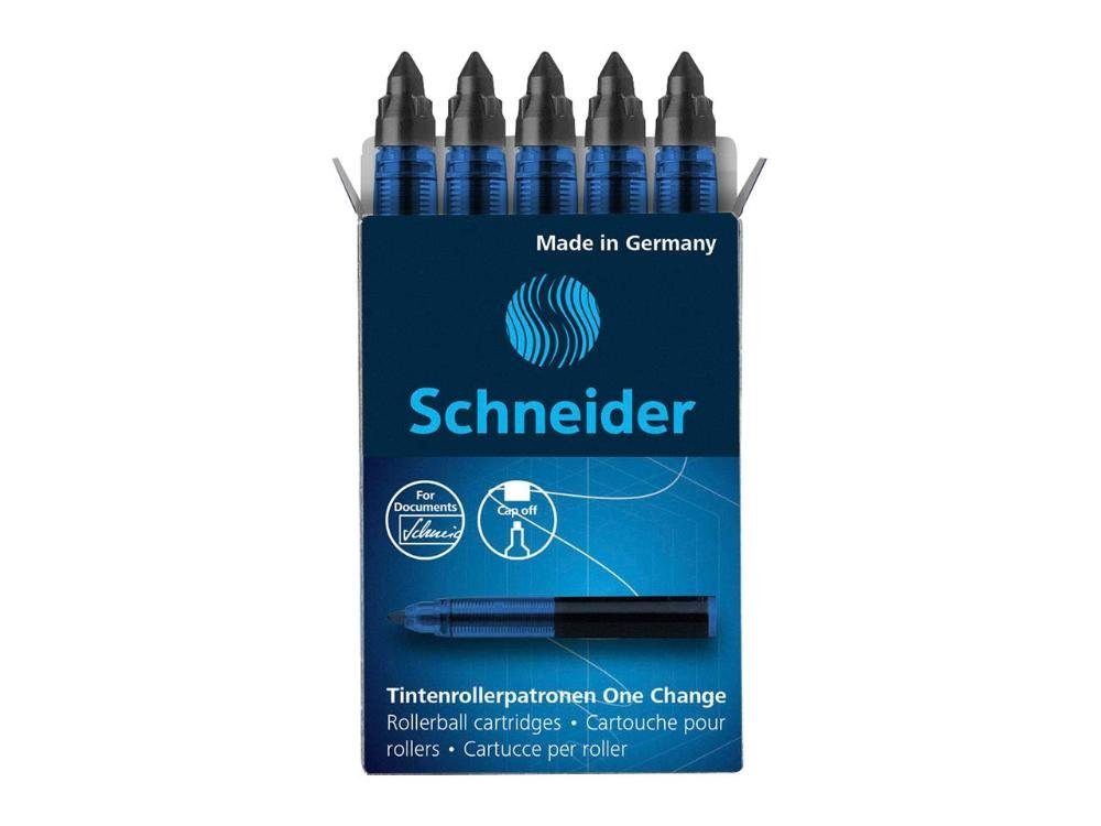 Die Ersatzpatronen sind speziell für den Schneider Tintenroller 'One Change' entwickelt. Die Tinte auf Wasserbasis ist nach ISO 14145-2 dokumentenecht. Sie trocknet schnell und ist wischfest. Die Spitze der Patrone ist ultra-smooth für ein exzellentes Schreibgefühl. 1 Pack = 5 Stk.