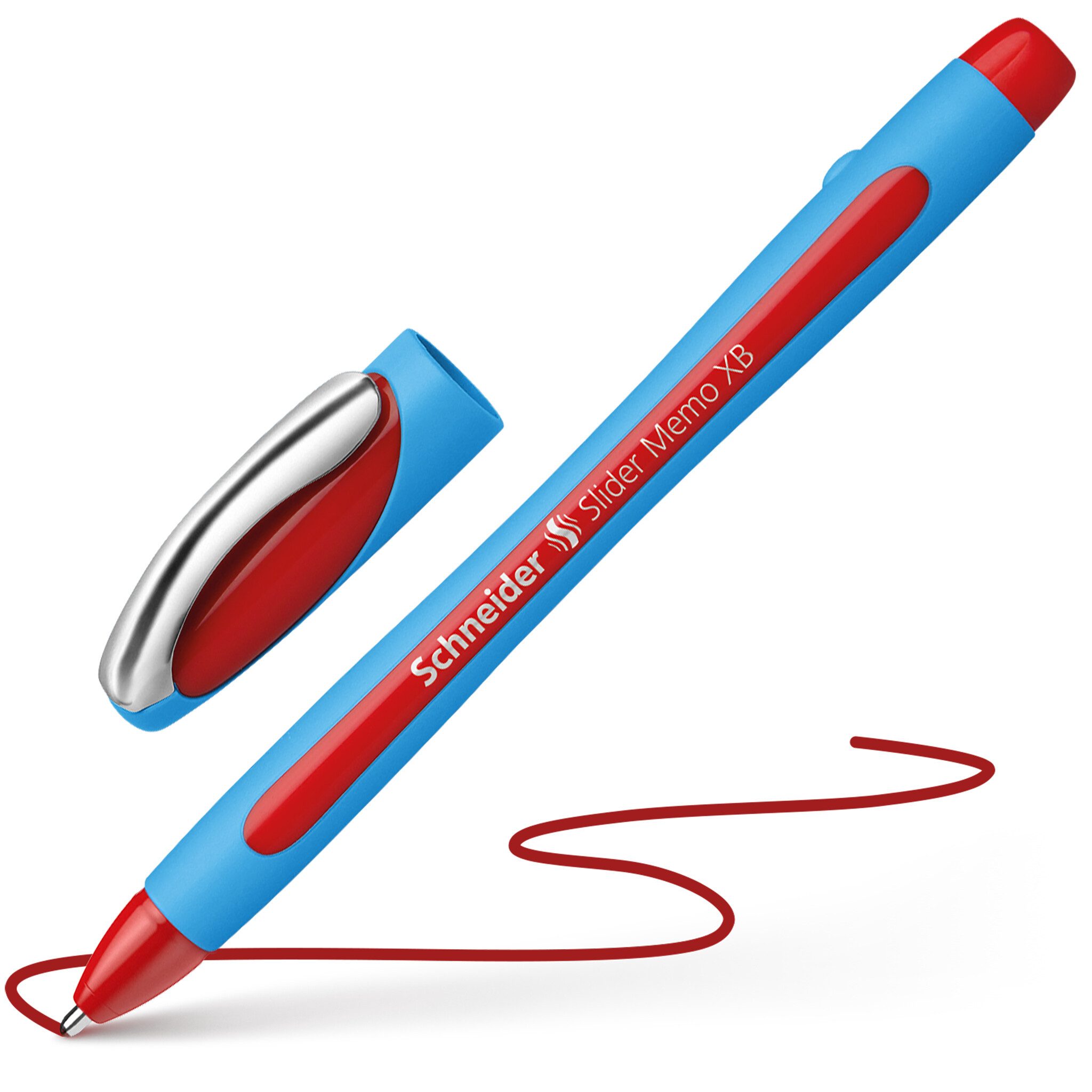 Schneider 75023 Slider Memo XB Kugelschreiber (mit Kappe, Strichstärke: XB, Schreibfarbe: blau, schwarz oder rot Made in Germany) 3er Pack Schneider Kugelschreiber Slider Memo XB – Schreibkomfort in Perfektion Der Schneider Slider Memo XB ist der Kugelschreiber, der alles bietet: herausragenden Schreibkomfort, exzellentes Design und langlebige Qualität. Entdecken Sie ein Schreibgerät, das den Unterschied macht! Weich und fließend schreiben Dank der innovativen Viscoglide®-Technologie gleitet der Slider Memo XB mühelos über das Papier. Die extraweite Strichstärke (XB) sorgt für ein angenehm weiches Schriftbild und satte, intensive Linien – ideal für Notizen, Unterschriften oder kreatives Schreiben. Ergonomisches Design Mit seinem gummierten Schaft liegt der Slider Memo XB sicher und bequem in der Hand, auch bei längeren Schreibsessions. Das schlanke, elegante Design macht ihn zum perfekten Begleiter für den Alltag – egal ob im Büro, in der Schule oder zu Hause. Langanhaltend und dokumentenecht Die Spezialtinte des Slider Memo XB trocknet schnell, ist verschmierungsfrei und dokumentenecht nach ISO 12757-2. Verlassen Sie sich auf ein zuverlässiges Schriftbild, das langfristig Bestand hat. Qualität „Made in Germany“: Der Slider Memo XB überzeugt nicht nur durch seine Leistung, sondern auch durch seine Umweltfreundlichkeit. Schreiben Sie komfortabler als je zuvor – mit dem Schneider Kugelschreiber Slider Memo XB! Jetzt erhältlich – für alle, die Wert auf Stil und Qualität legen.