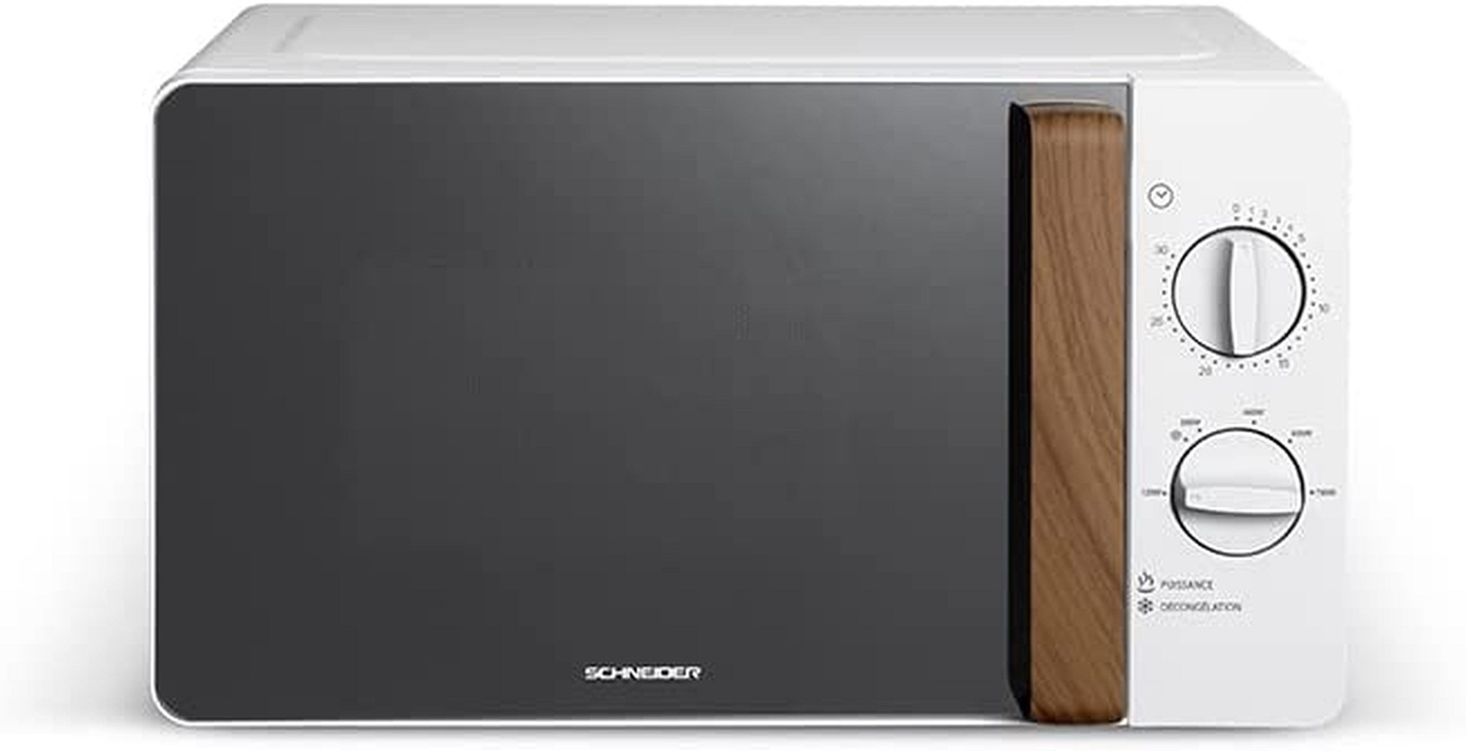 Die Schneider Mikrowelle aus der Fjord Line überzeugt mit Ihrem eleganten Design, welches durch den Griff in Holzoptik abgerundet wird. Von Vorteil ist das große Volumen von 20 Liter und der Drehteller mit einem Durchmesser von 24,5 cm. Mit 5 Funktionen ist dieses Produkt ein wahrer Allrounder. Besonders beliebt ist die Auftau Funktion mit der sie Gerichte direkt aus dem Tiefkühler aufwärmen können.