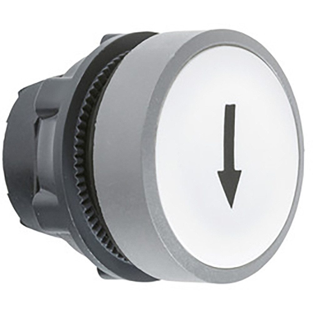 Drucktaster aus Kunststoff Baureihe Harmony XB5 als Frontelement und 22mm Einbaumaß. Farbe des Drucktasters ist weiss und beschriftet mit Pfeil nach oben. Betätigungsfunktion ist ohne Rastung. Die Farbe des Außenrings ist grau. Die modularen Harmony Baureihen mit 22mm Einbaumaß kombinieren einfache Installation, Effizienz, modernes Design, Flexibilität mit höchster Robustheit. IP-Schutzklassen bis IP69K und Umgebungstemperaturen von -40°C bis +70°C. Produktstandards gem. EN/IEC 60947-5-1, EN/IEC 60947-5-4, CSA C22.2 No 14, UL 508, EN/IEC 60947-1, JIS C 4520. Zertifizierungen nach DNV, GL, UL gelistet, RINA, BV, CSA, LROS (Lloyds register of shipping). Produktstandards gem. EN/IEC 60947-5-1, EN/IEC 60947-5-4, CSA C22.2 No 14, UL 508, EN/IEC 60947-1, JIS C 4520