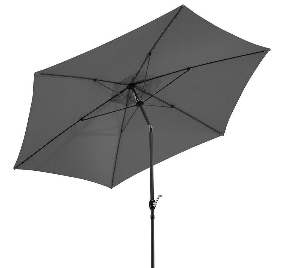 Produktdetails: UV-Schutz 50 + | Aufspannung mit Kurbel | Schirmhöhe: 230 cm | Material Sonnenschirmbespannung: 100 % Polyester | Schirmmast: Stahl pulverbeschichtet anthrazitgrau | Maße Schirmmast: Ø 38 mm | Maße aufgespannter Schirm: Ø 270 cm | Metall-Knicker mit Druckknopf zur Neigung des Schirmdachs | Schirmform: rechteckig | Farbe: anthrazit | verrottungsfest, wasserabstoßend imprägniert, mit air-vent, abnehmbar für Handwäsche | Gewicht: 16,2 kg | Empfohlenes Mindestgewicht Schirmständer: 40 kg | Lieferumfang: Schirm (Ständer separat erhältlich) |