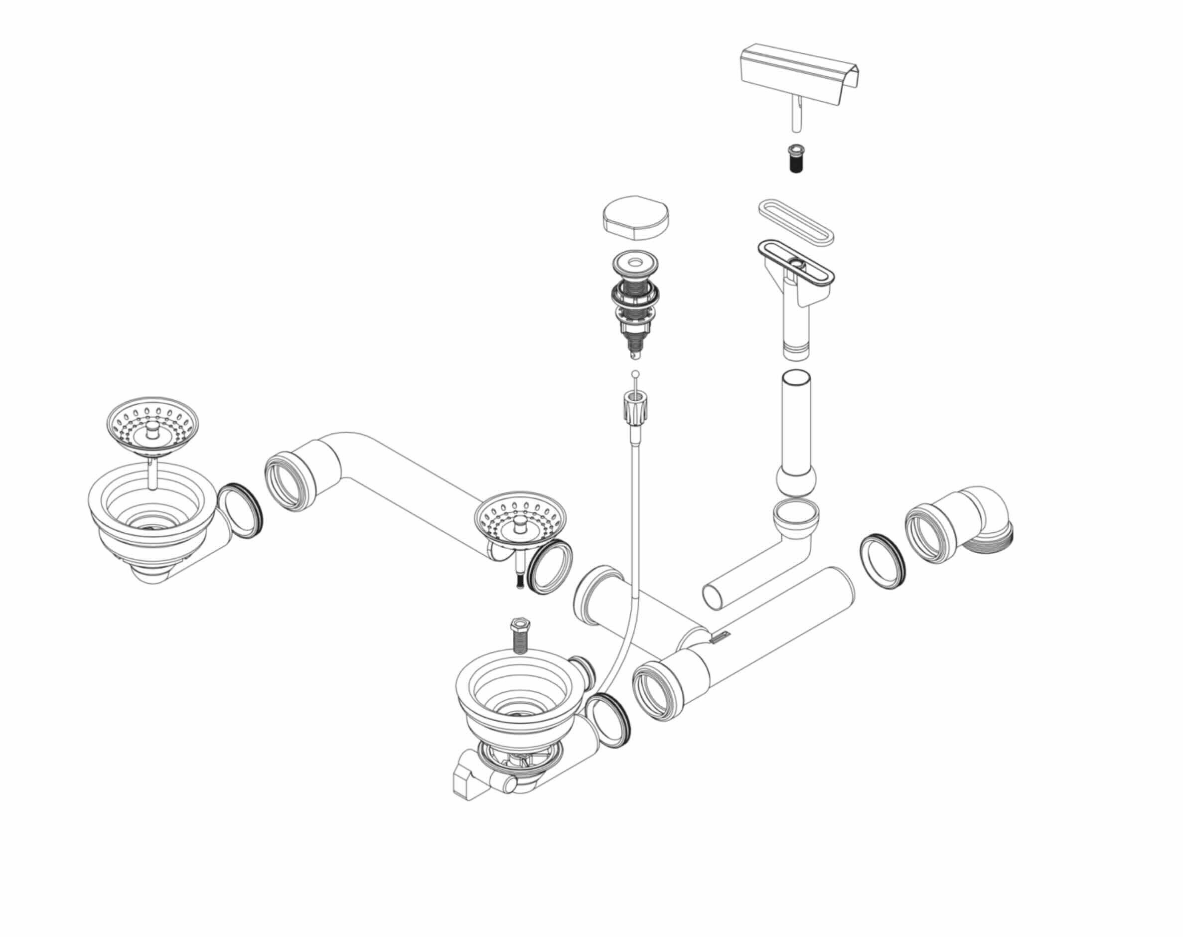 Die Ablaufgarnitur dient der komfortablen Bedienung des Abflusses über den Drehexcenterknopf. Mit wenigen Handgriffen lässt sich der Abfluss öffnen und schließen, ohne direkt in das Spülbecken greifen zu müssen.