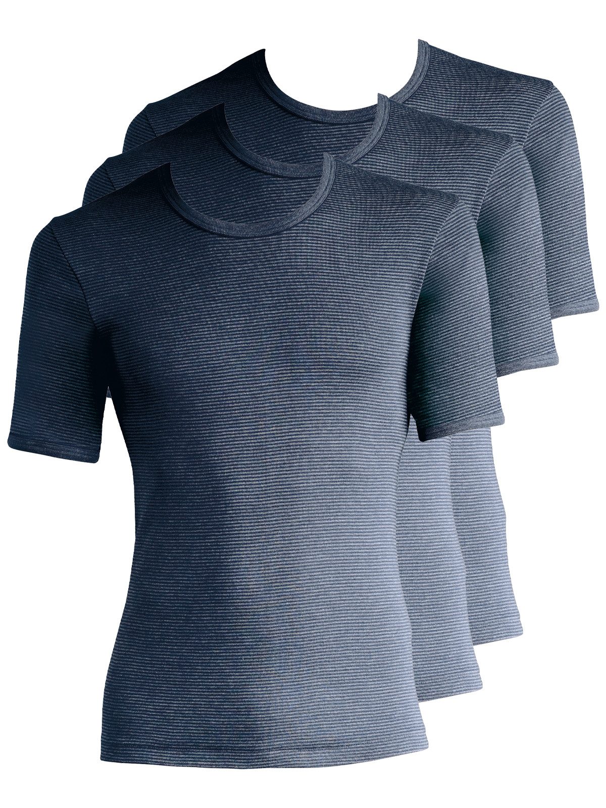 3er Pack Herren T-Shirt Unterhemd von der Marke Schöller aus der Serie Funktionswäsche. Besondere Merkmale des Artikels sind mit kurzen Ärmeln, tolles Tragegefühl, komfortabel zu jeder Jahreszeit, Ringeloptik im Jeanslook und supergekämmte Baumwolle. Vertrauen Sie auf Schöller Unterwäsche und erleben Sie den Unterschied: hochwertige Materialien, toller Tragekomfort und eine vielfältige Auswahl an Designs machen Schöller zur idealen Wahl für alle, die Wert auf Qualität legen. Füllen Sie Ihre Unterwäsche-Schublade mit zeitlose Basics und modernen Trends Schöller – bequem und verlässlich!