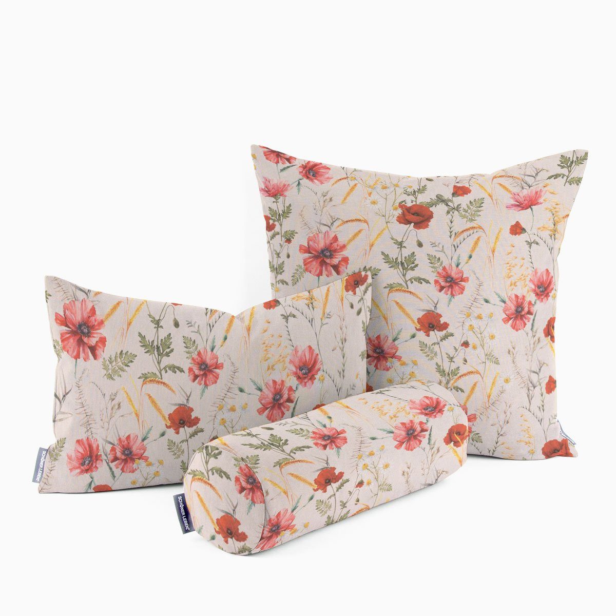 NATÜRLICH UND MODERN: Auf der Kissenhülle blüht eine Sommerwiese in den tollsten Farben und macht diese zu einem bezaubernden Hingucker.